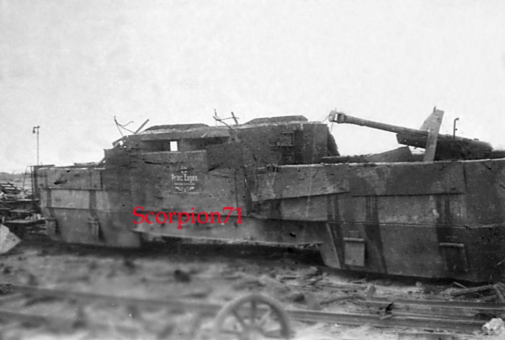 Наверно заинтригую.Но прийдется потерпеть до завтра.Выложу фото бронепоезда на борту которого надпись трафаретом в венке из листьев - "Принц Евгений" назначение-Одесса-Днепропетровск.Оригинал фото у меня,и пленка тоже.Бывший хозяин советский летчик.Он в годы войны занимался аэрофотосъемкой.После того как по его целям наносился удар и территория была очищена от немцев он и "группа товарищей" производили сверку по целеуказанию.Шикарная у него подборка фото и пленок.Кстати дослужился до героя,но умер не у нас в Америке.Ну это краткая информация,а фото завтра.Судя по записям автора вроде бронепоезд стоит на разрушеном ж/д вокзале в Севастополе (очень пожоже),но может быть и Одесса и Днепропетровск.Фото из альбома пока не видел никто.они не публиковались.С уважением.