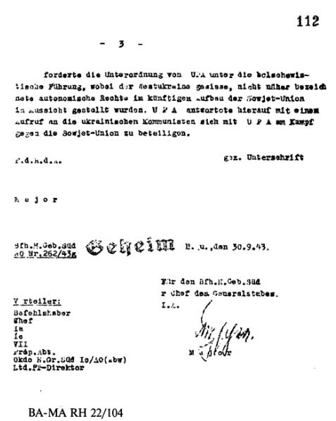 Примечание: здесь я процитировал только ту часть большого документа, которая непосредственно касается УПА. Полный текст см.: Україна в Другій світовій війні у документах. - Т.3. - Львів, 1999 - С.291-302.