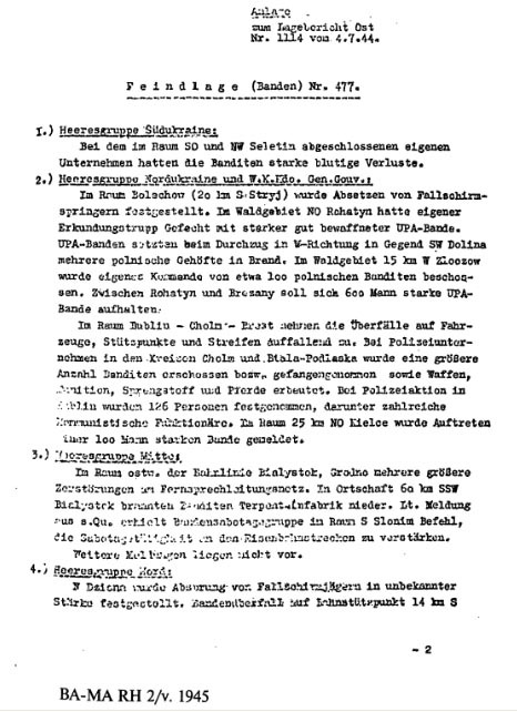 Немецкий отчёт о положении "банд" и директивы об отношении к УПА (20 апреля 1944 г.).