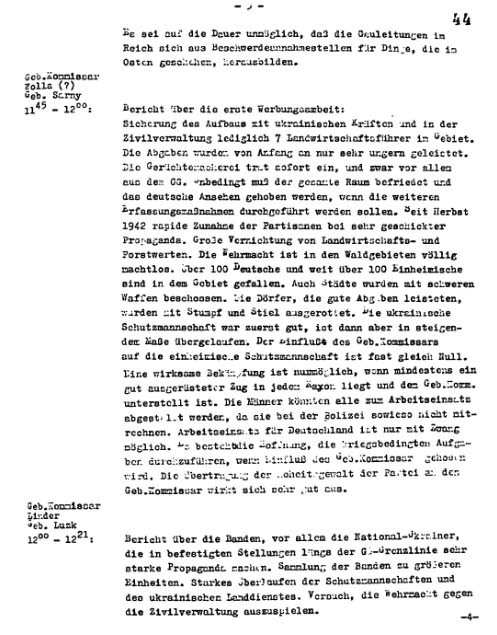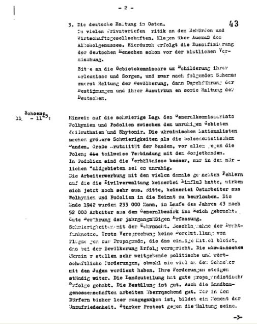 Выдержка из аналитического отчета об ошибках немецкой политики в Украине (22.10.1943).