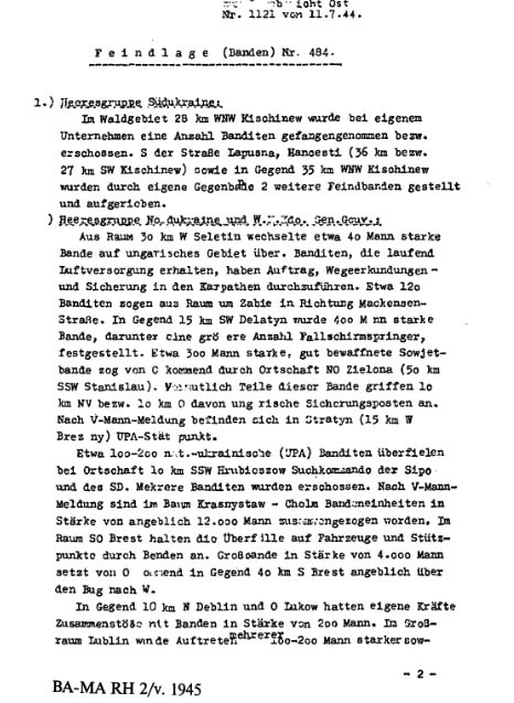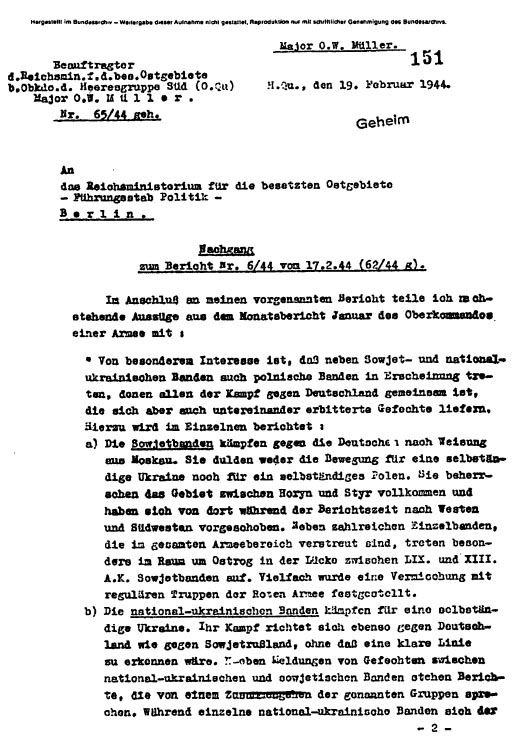 Немецкий отчёт о движении сопротивления в Западной Украине (19 февраля 1944 г.).