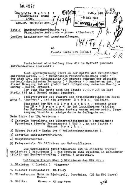 Донесение немецкой контрразведки о структуре и деятельности УПА (5.12.1943).