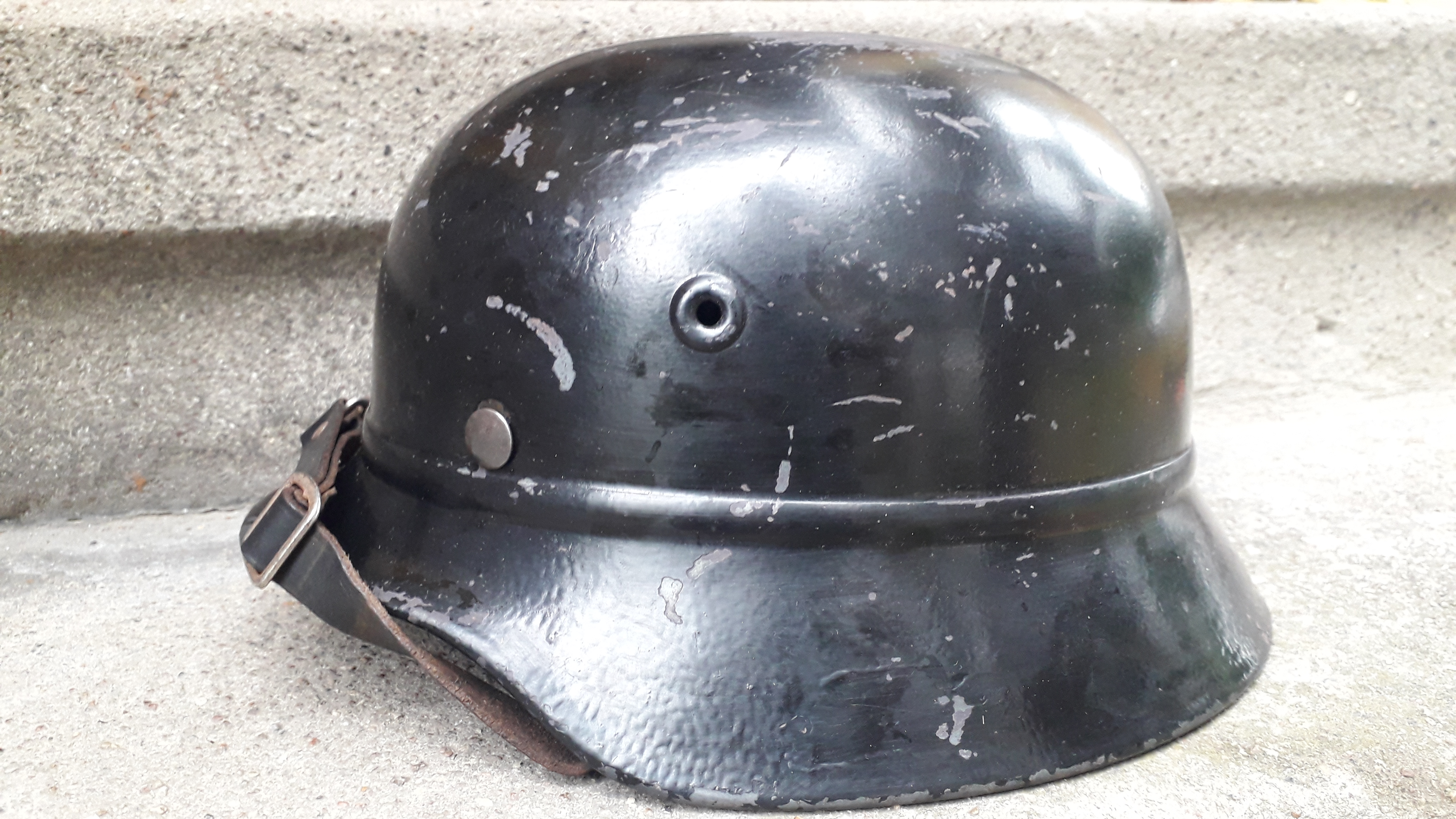 Этот шлем называется официально "Ausschusshelm" от Ausschuss-брак, отбракованный шлем. Никто эти каски специально для нужд Luftschutz не изготавливал, просто эти отбракованные каски представляли собой обычные стальные каски М35, М40, М42, не прошедшие контроль качества и, следовательно, не предназначенные для использования на фронте. Чтобы это было более наглядно, вокруг сферы шлема накатывался такой желоб по всей окружности. Эти шлемы использовались в полиции, пожарных частях, люфтшутце, ополчении - фольксштурм и т.д. Использование этих шлемов моторизованными частями является полнейшим заблуждением. Они использовались везде кроме фронта и для этого были собственно отбракованы.