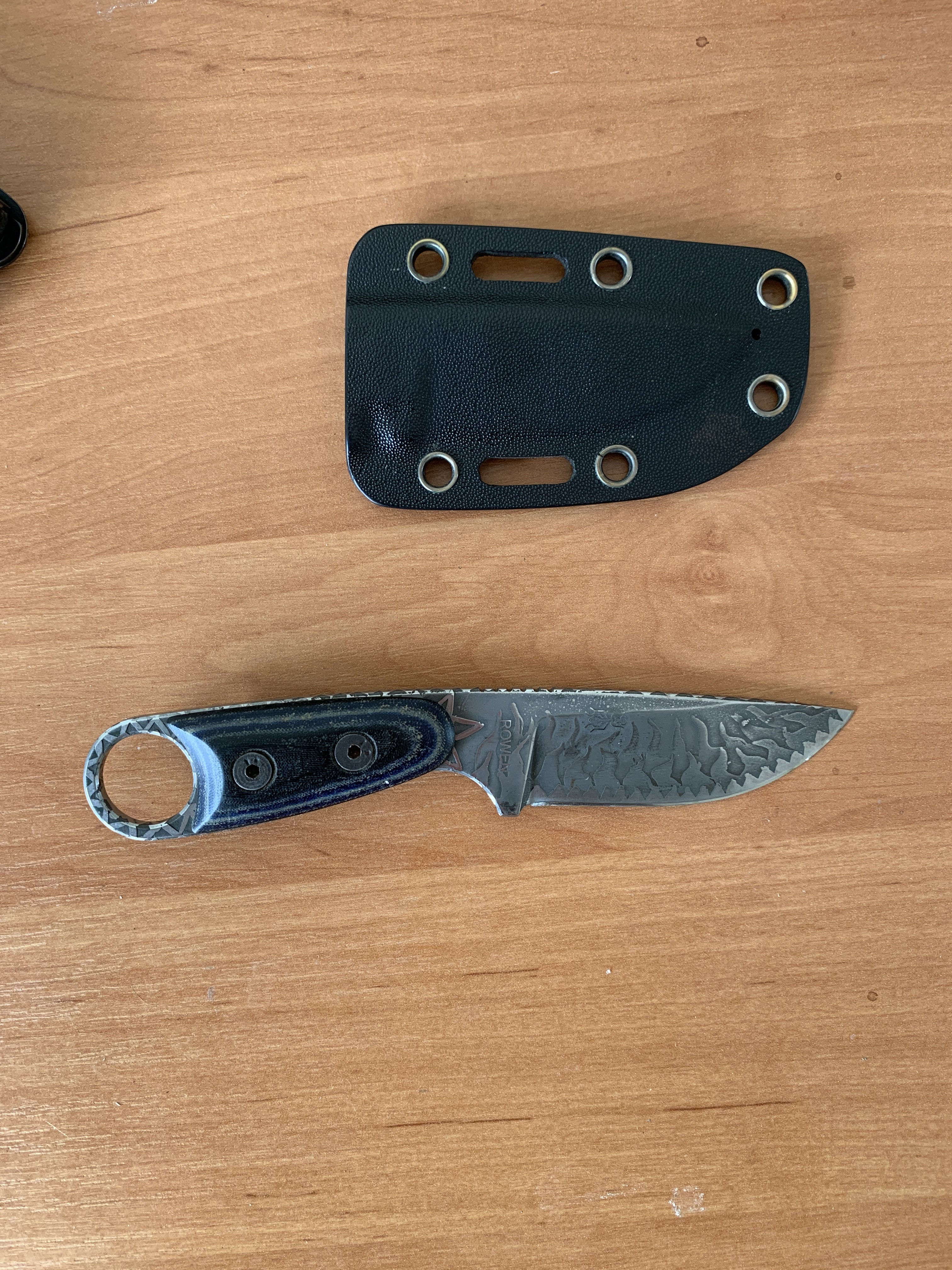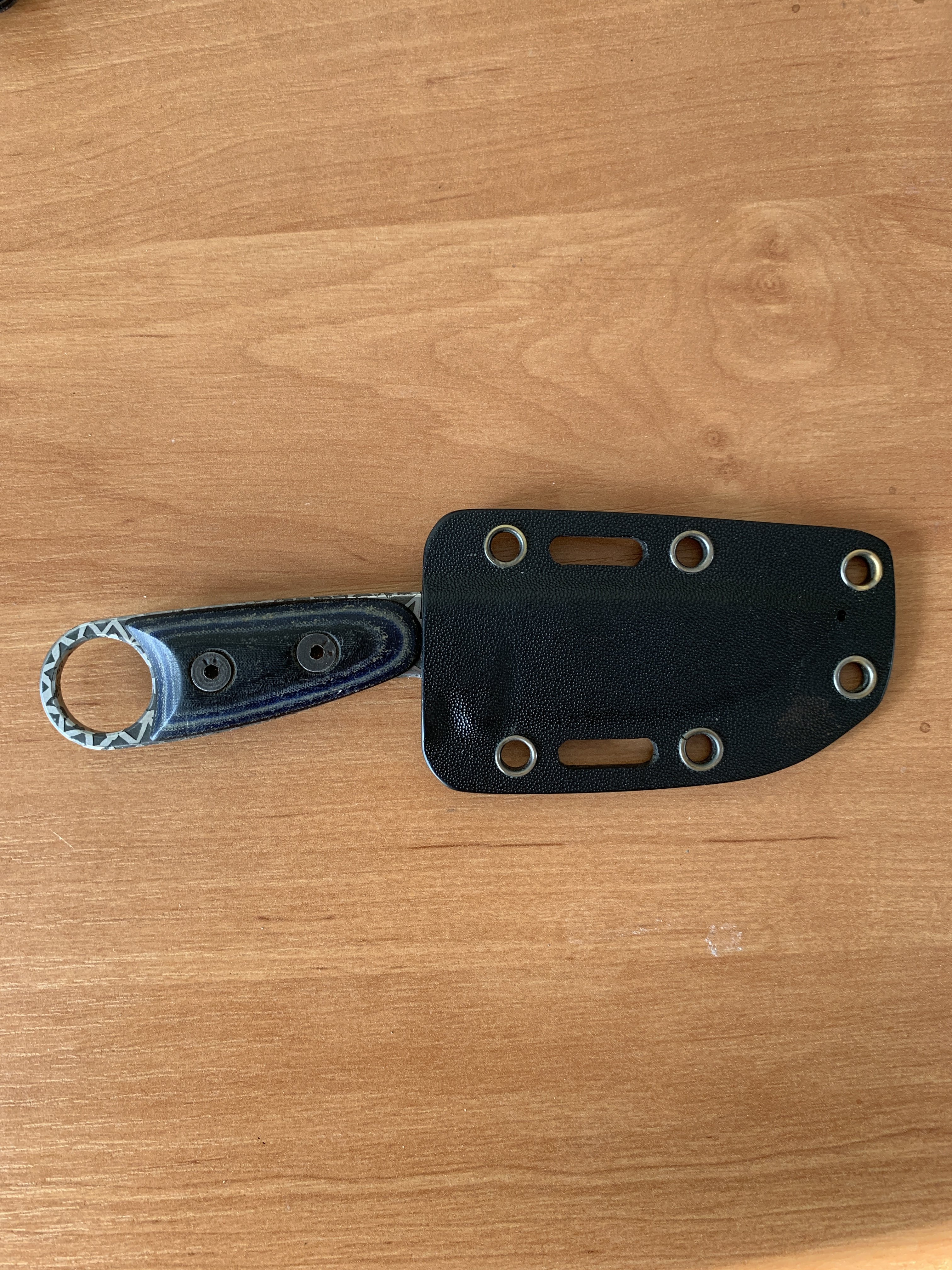Стан на фото Ціна 600грн Характеристики: Сталь: D2 Довжина леза: 7 cм Загальна довжина : 16.4 cм Товщина клинка: 3.9 мм Ножни: кайдекс Вага ножа: 62 г