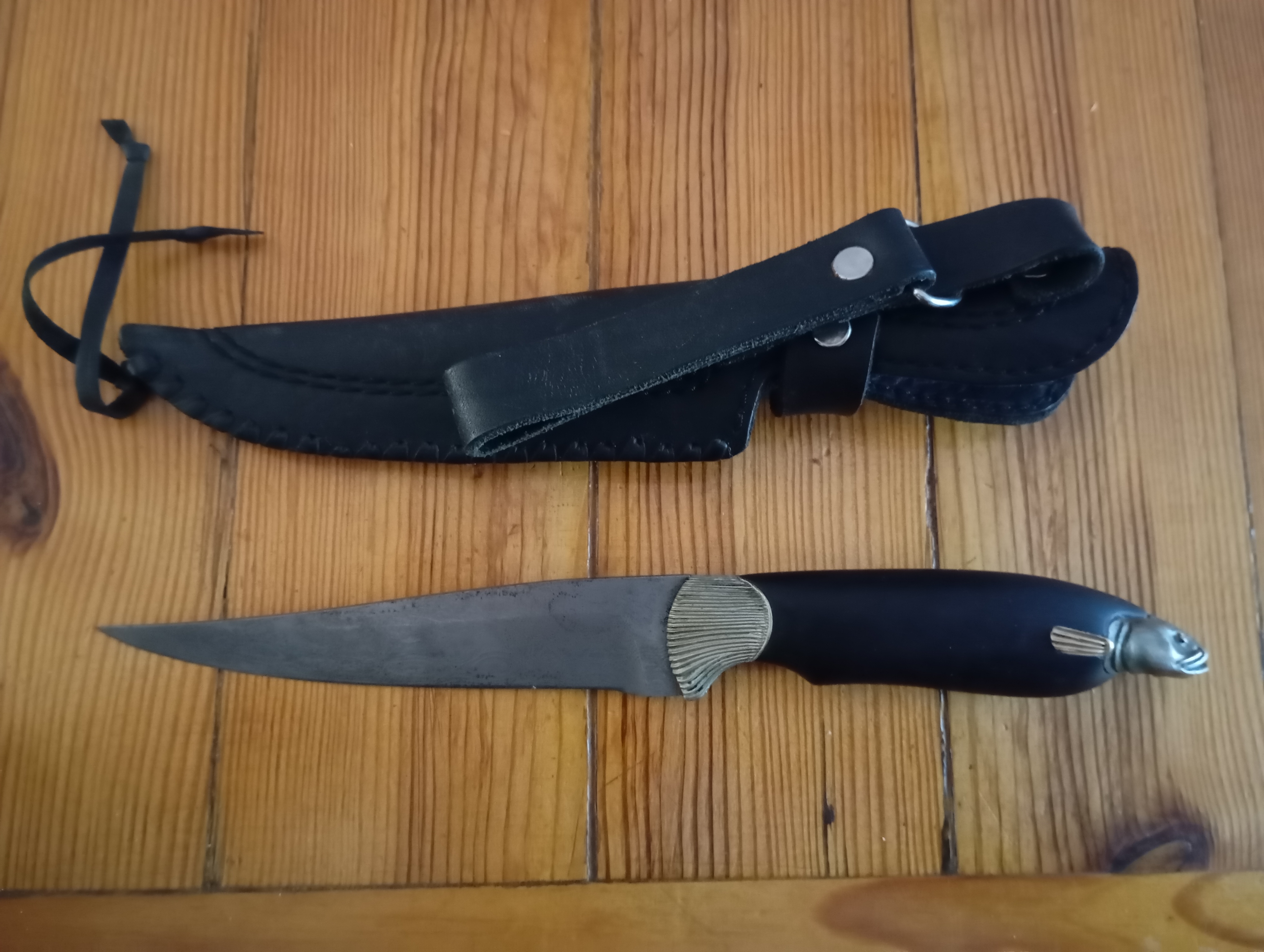 Ніж сильно сточений. Дамаська сталь для рибацького ножа - дивний вибір. Дамаск - ще та лотерея, без інформації про сталь, з якої сковано та про твердість, я б оцінив до 1 тис..