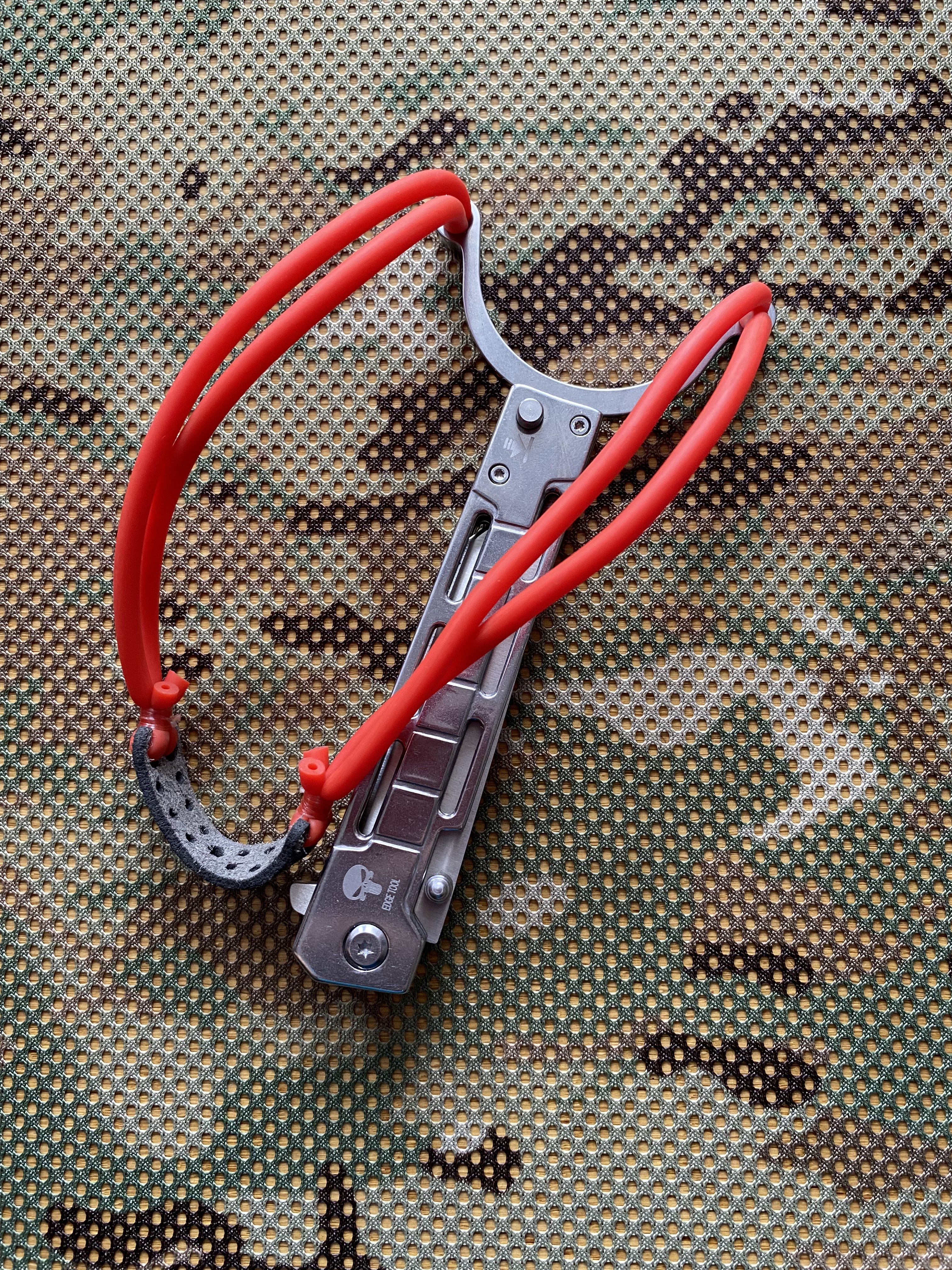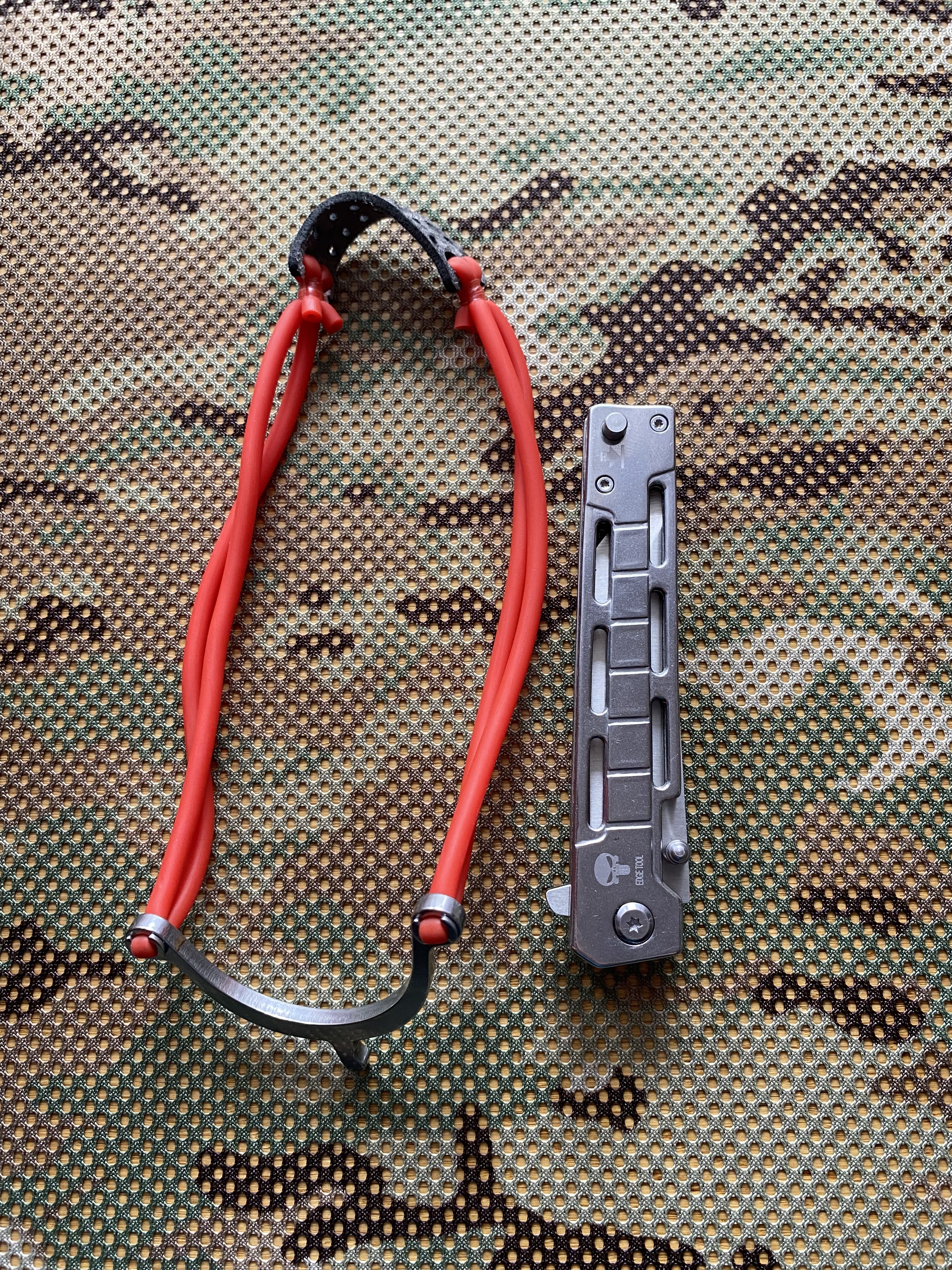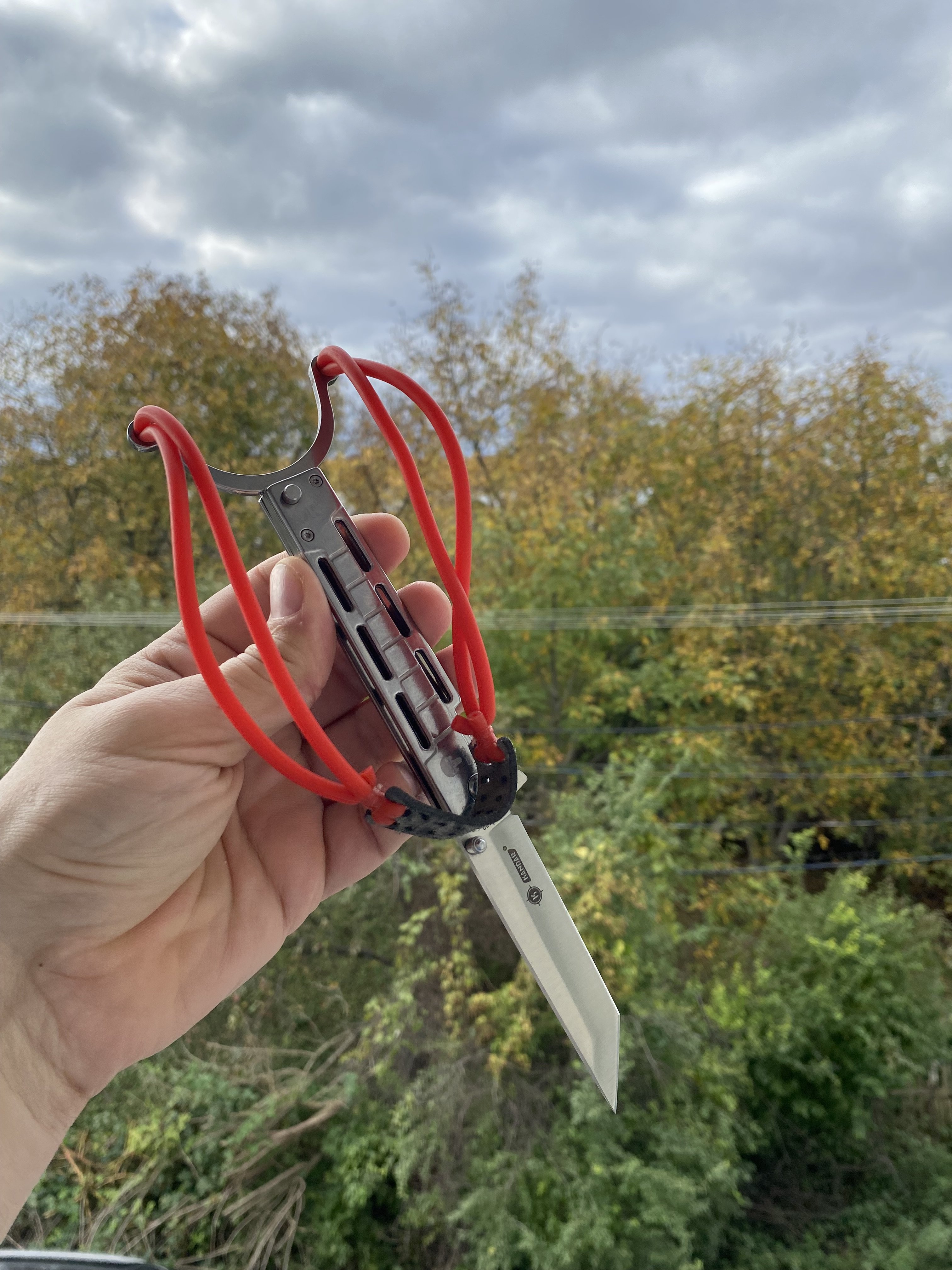 Ніж складний з рогаткою Рогатка знімається Ціна - 500 грн Характеристика: - довжина леза - 90 мм (9 см) - довжина ручки - 115 мм (11.5 см) - довжина складеного з рогаткою - 150 мм (15 см) - товщина леза (обух) - 3 мм - сталь - 440С - накладки (плашки) - металеві - кліпса - є - чехол - шкірзам
