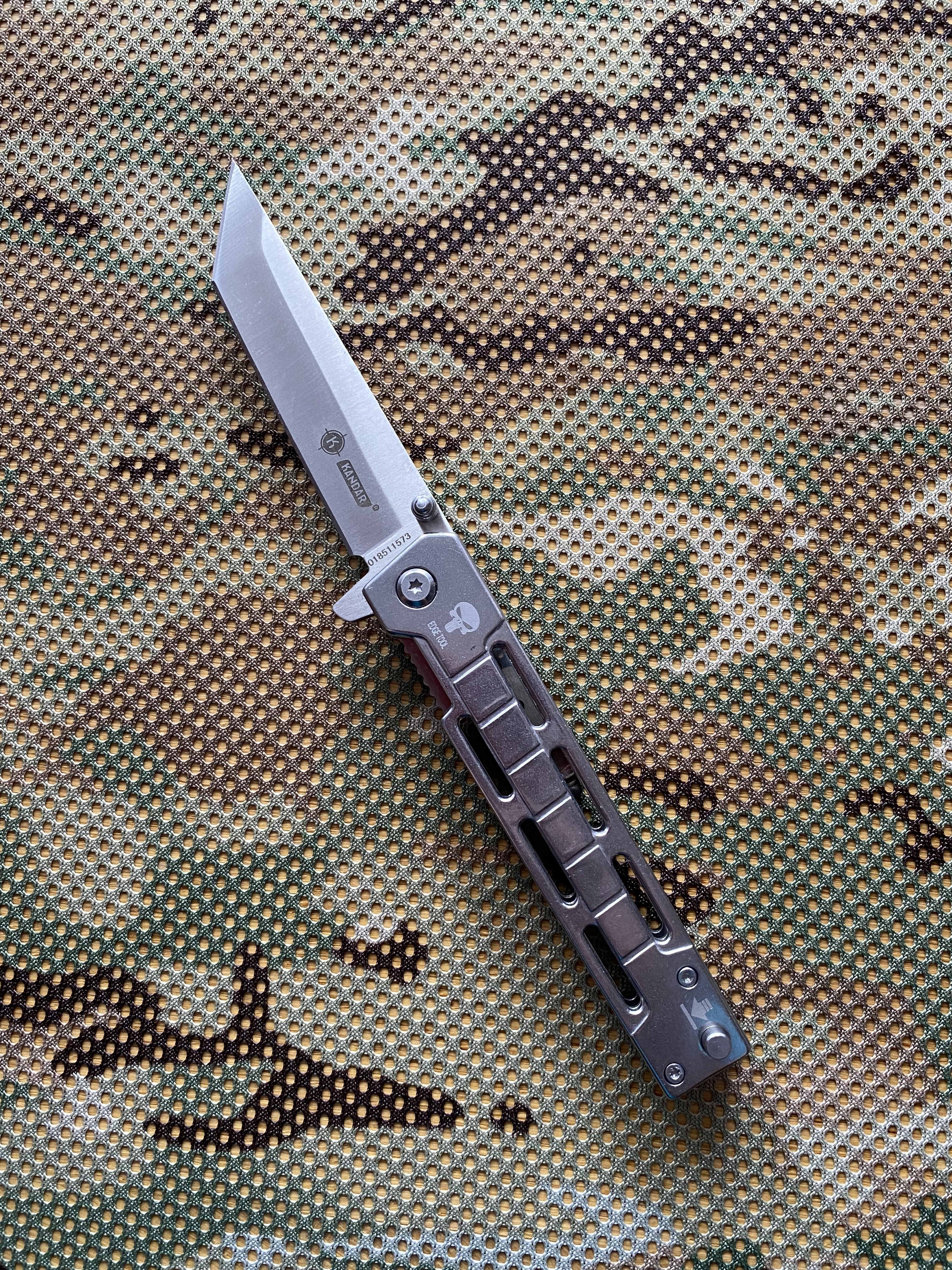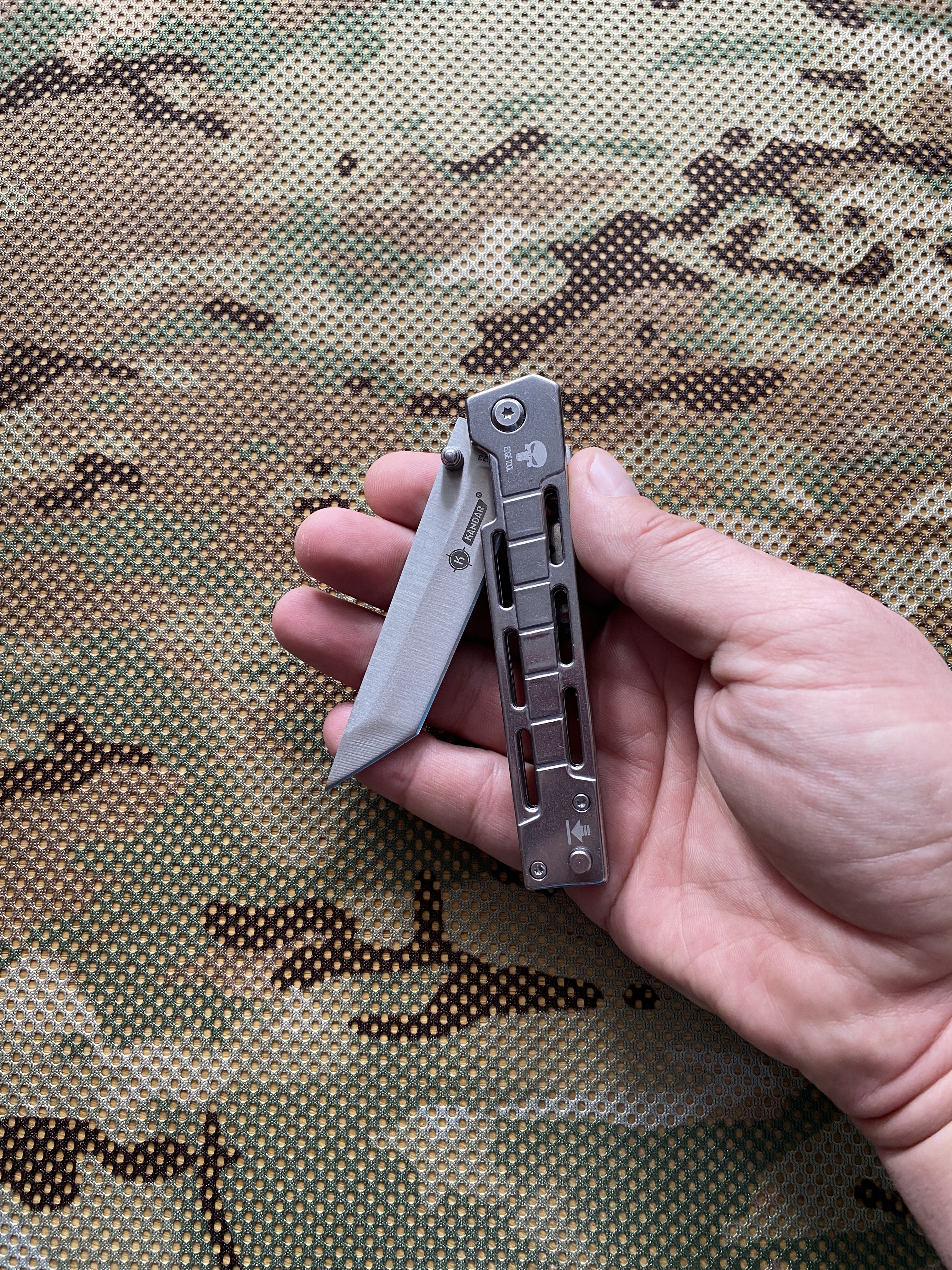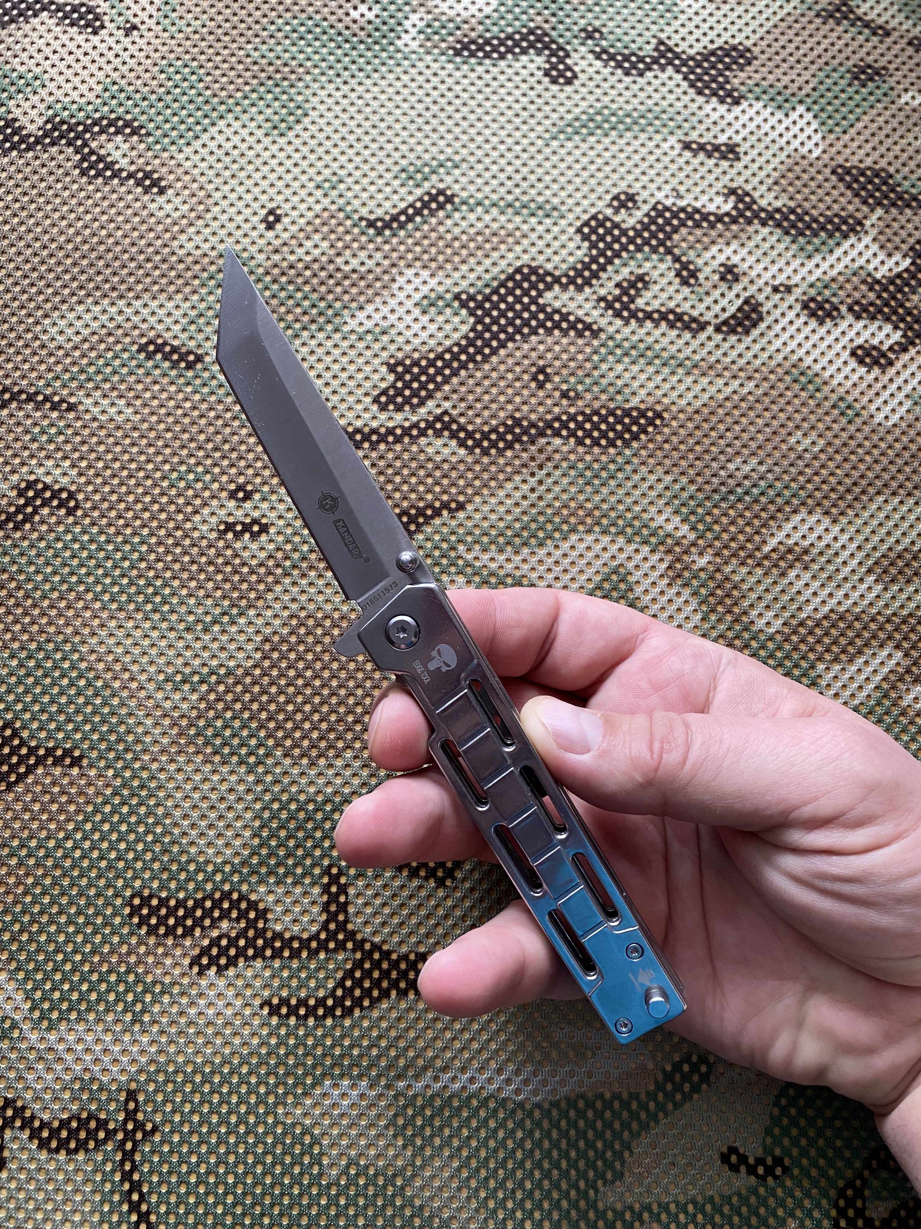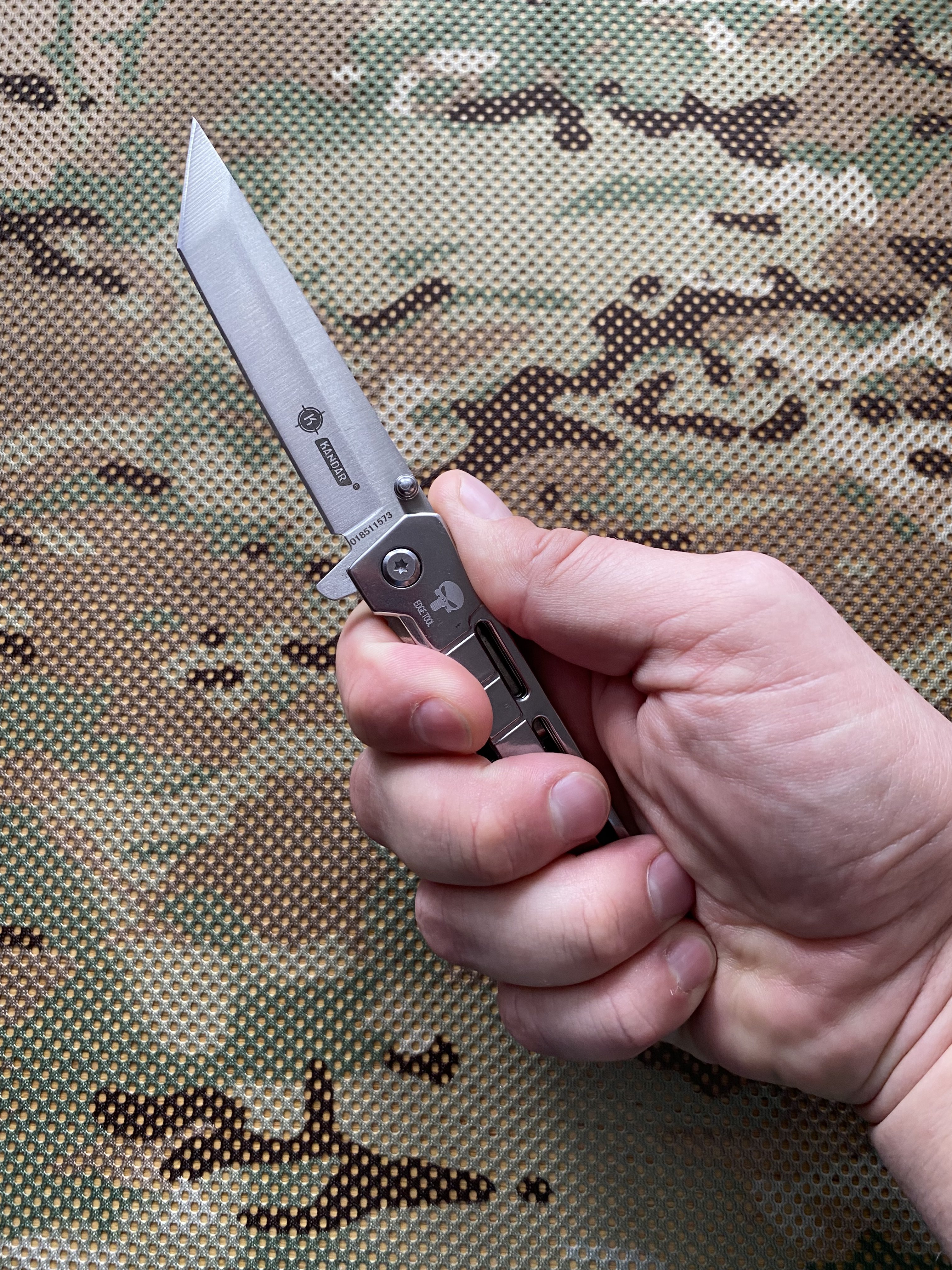 Ніж складний з рогаткою Рогатка знімається Ціна - 500 грн Характеристика: - довжина леза - 90 мм (9 см) - довжина ручки - 115 мм (11.5 см) - довжина складеного з рогаткою - 150 мм (15 см) - товщина леза (обух) - 3 мм - сталь - 440С - накладки (плашки) - металеві - кліпса - є - чехол - шкірзам