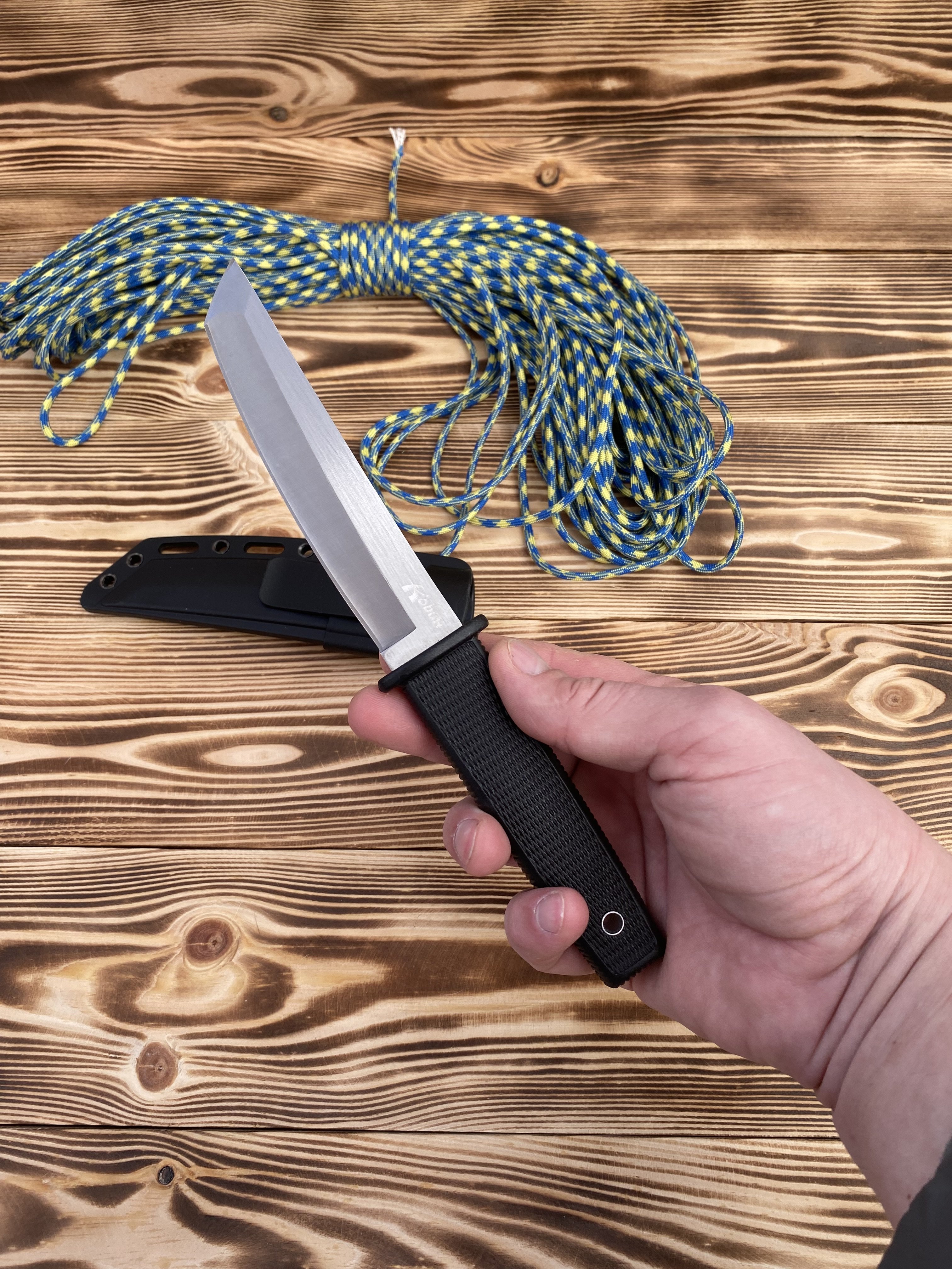 Ціна - 300 грн Нові Ніж танто фірми Cold Steel (репліка), з сталю AUS 8A (вказано на клинку) Характеристика: - довжина загальна - 25 см - довжина леза - 13,5 см - товщина леза (обух) - 3,4 мм - сталь AUS 8A (вказано на клинку) - ножни пластик, кліпса пластик - руків'я виготовлено з якісного пластику - вага ножа/в ножнах - 128/173 г.