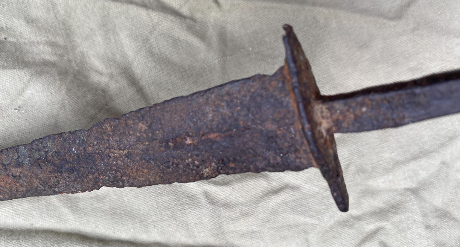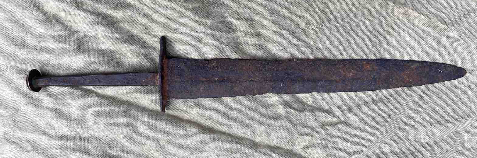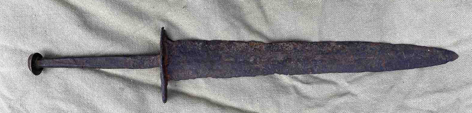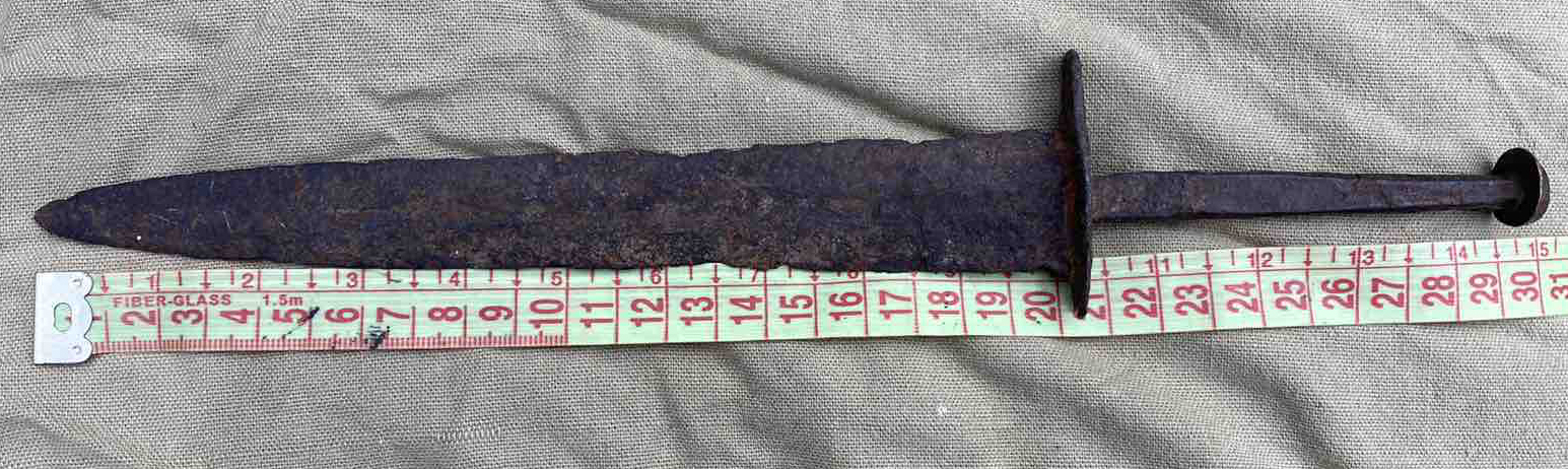 Спочатку подумалося що середньовічча. Але розповсюджені тоді у східній Європі корди мають інший вигляд та геометрію.У західній Європі був у 13 ст. схожий мечеподібний кінжал квілон, але в нього інша побудова руків'я. Тож мая думка шо се так званий їсторізмус, кабінетна зброя-підробки під середньовічну зброю які були дуже популярні у 19 ст. у добу романтизму і прикрашали кімнати заможних містян, маєткі панів. Цікавий як такий собі антураж бо стан збереження так собі....