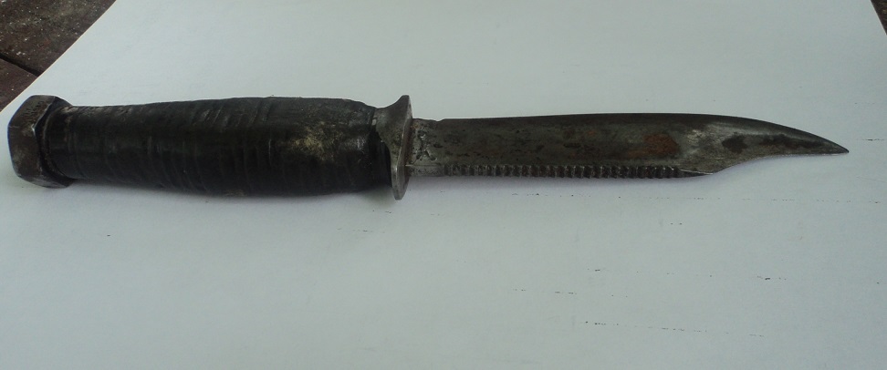 " Тюнингованый" нож ВВС США, рукоять и гарда были заменены. Да и клинок пострадал, если он вообще родной...
