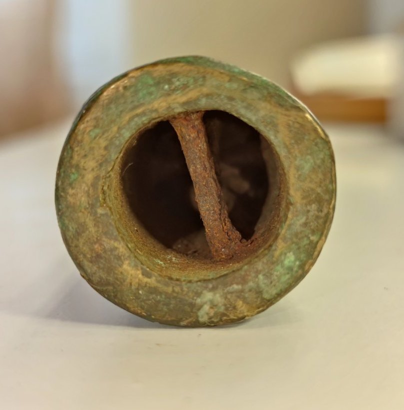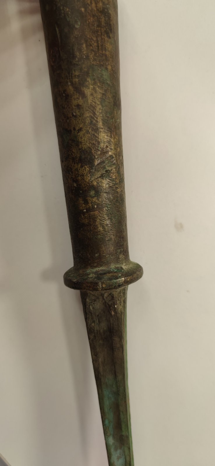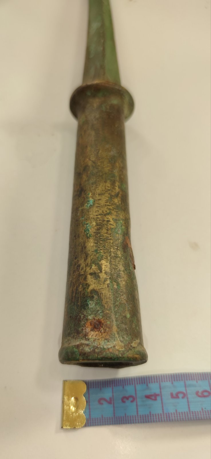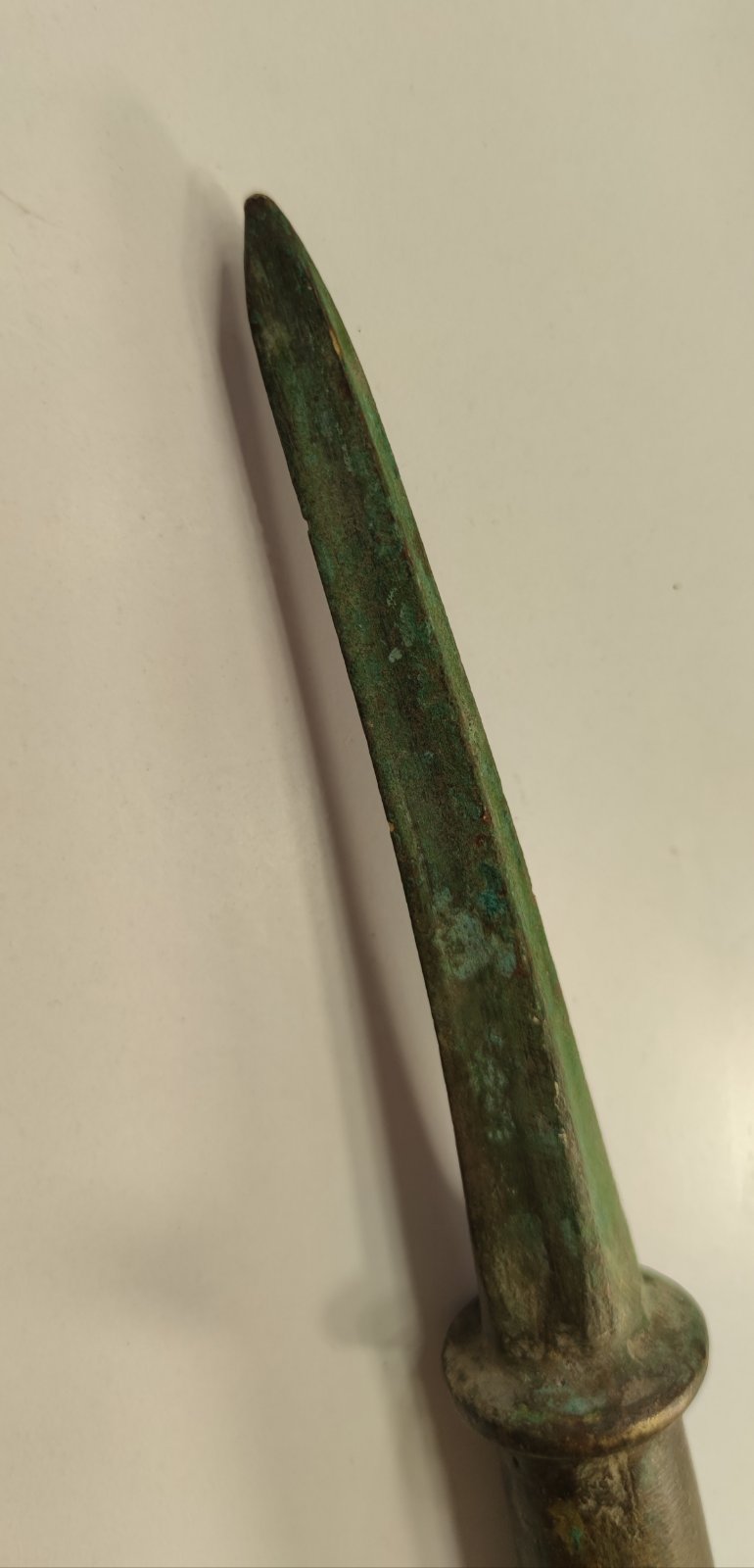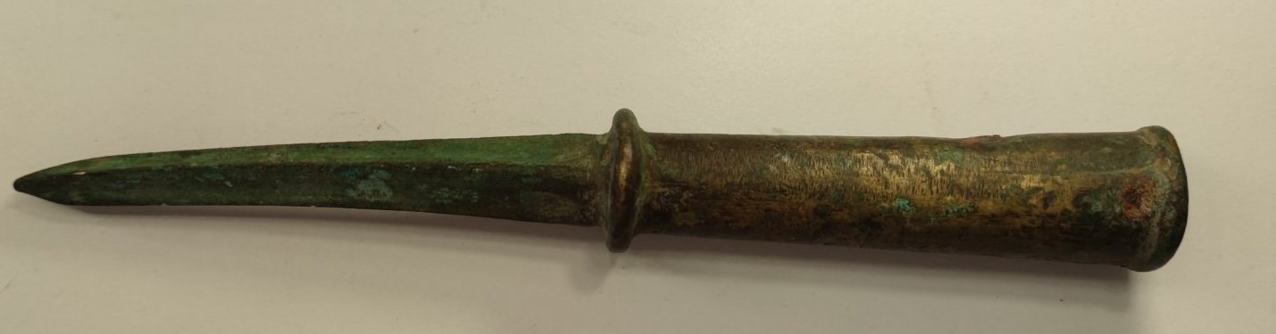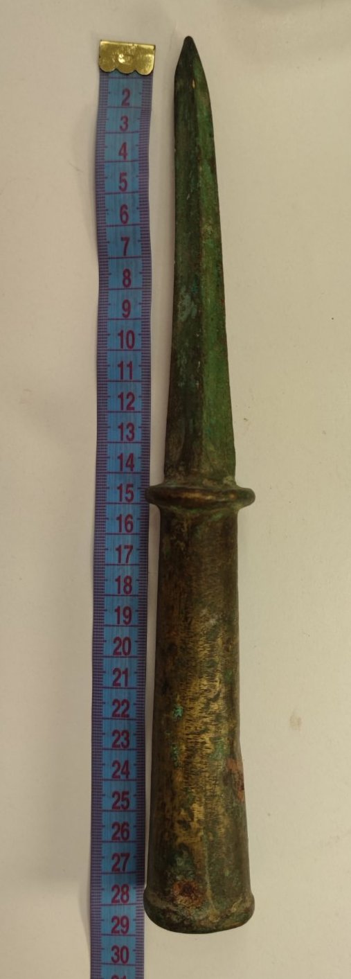 Доброго! Імхо, предмет не ніж, більше піку нагадує. Можливо, верхівка кавалерійського прапорця, якщо матеріал латунь. З повагою,