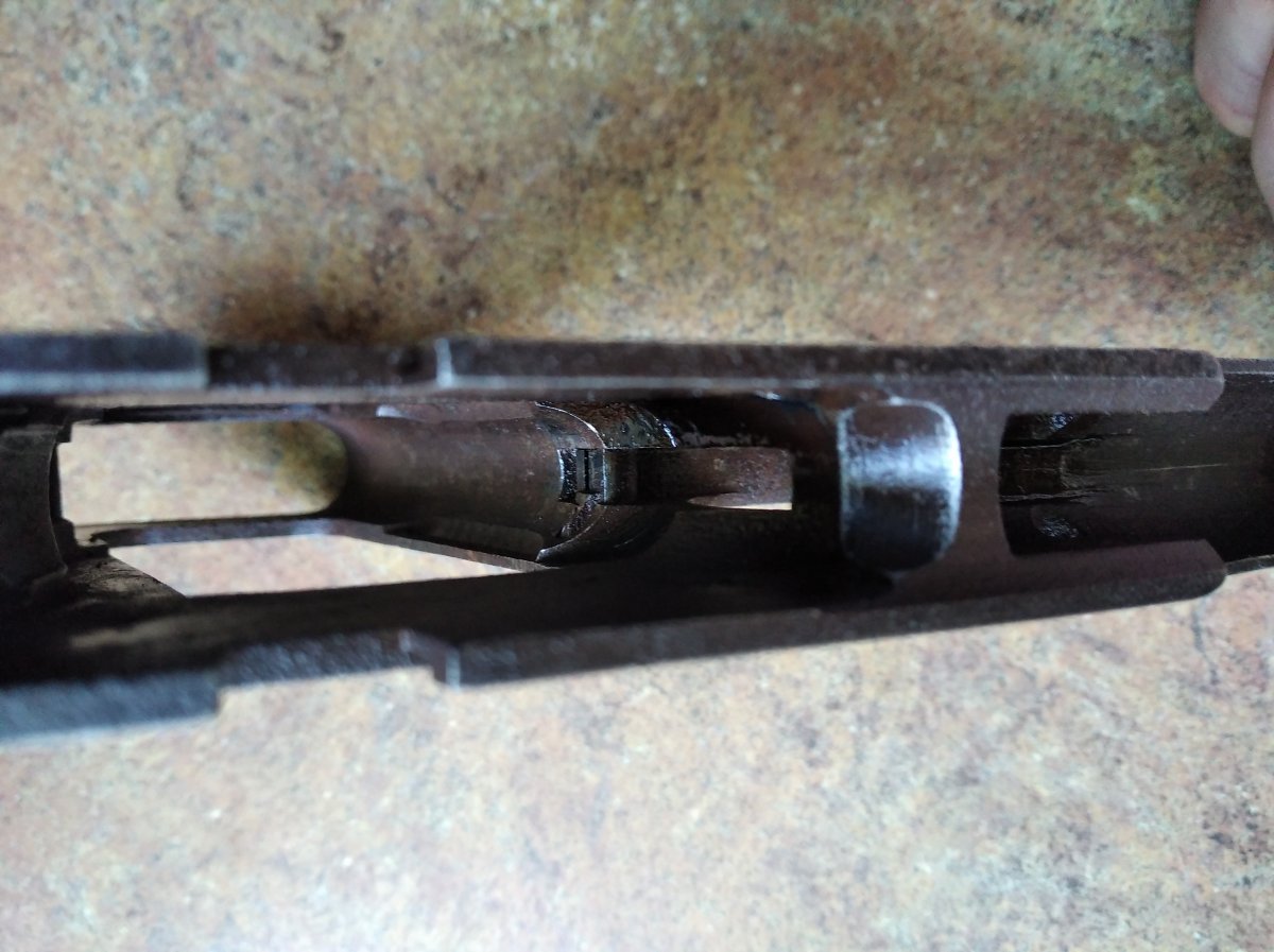 Доброго дня Камради! Підскажіть по ціні на таку рамку в непоганому стані, знайдена на горищі, все що було,все на фото.Кнопка фіксаціі магазина працюе, одним словом все що е, все працюе. Не мае пластинчатоі пружинки що відводить курок.
