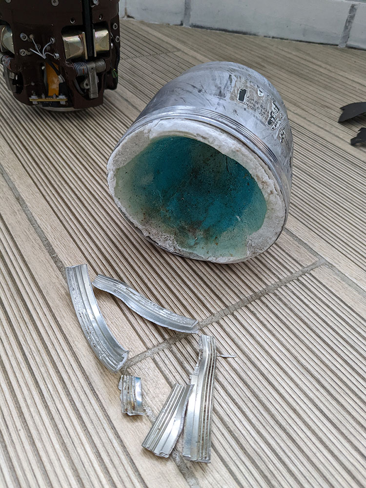 Також, як і зображено на одній із схем, кумулятив міститься у бочці у верхній частині. Механізм кріплення майже не зберігся, тому просто поклав це на місце. Думаю закрити якоюсь прозорою кришкою, але це пізніше.