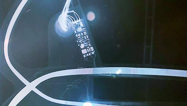 Рентгеновский снимок штатной катушки 11 DD (SP28 DD) металлоискателя Nokta Simplex. На фото видно, внутри катушки размещена электронная плата. К сожалению, это не простой усилитель или фильтр сигнала. Это плата защиты против использования детекторе катушек сторонних производителей.