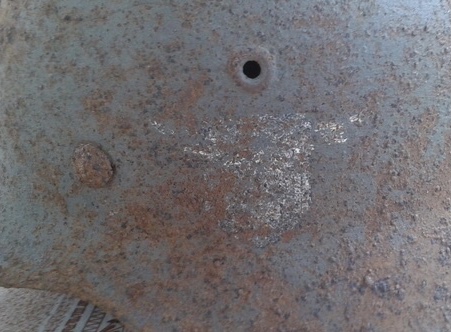 И на шлеме в сохране клеймо размерника пробито плохо. Но разглядеть можно. Есть только один шлем этой партии - это СС