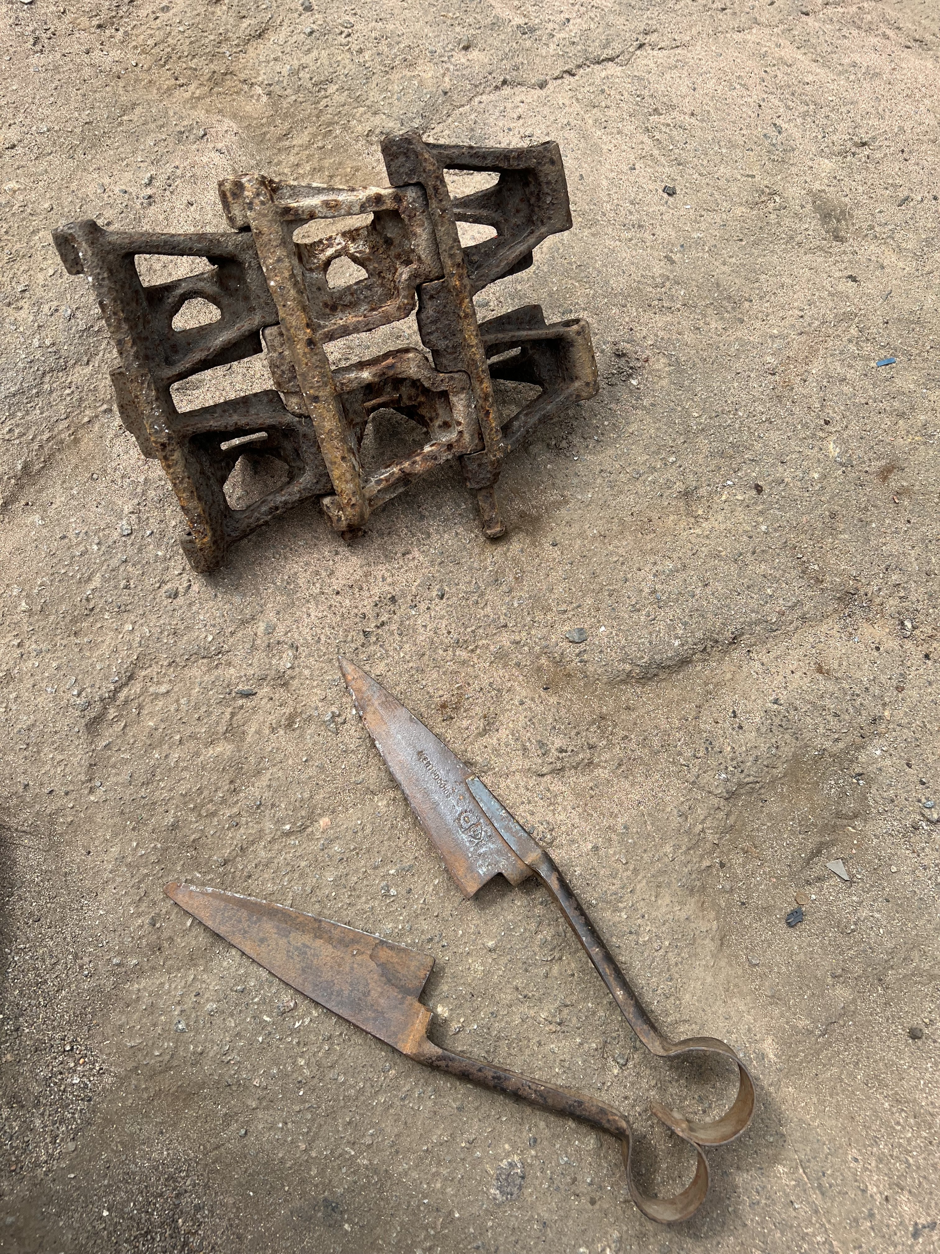 Фото13-15. Рейка вузькоколійки та колісна пара з дрезини.