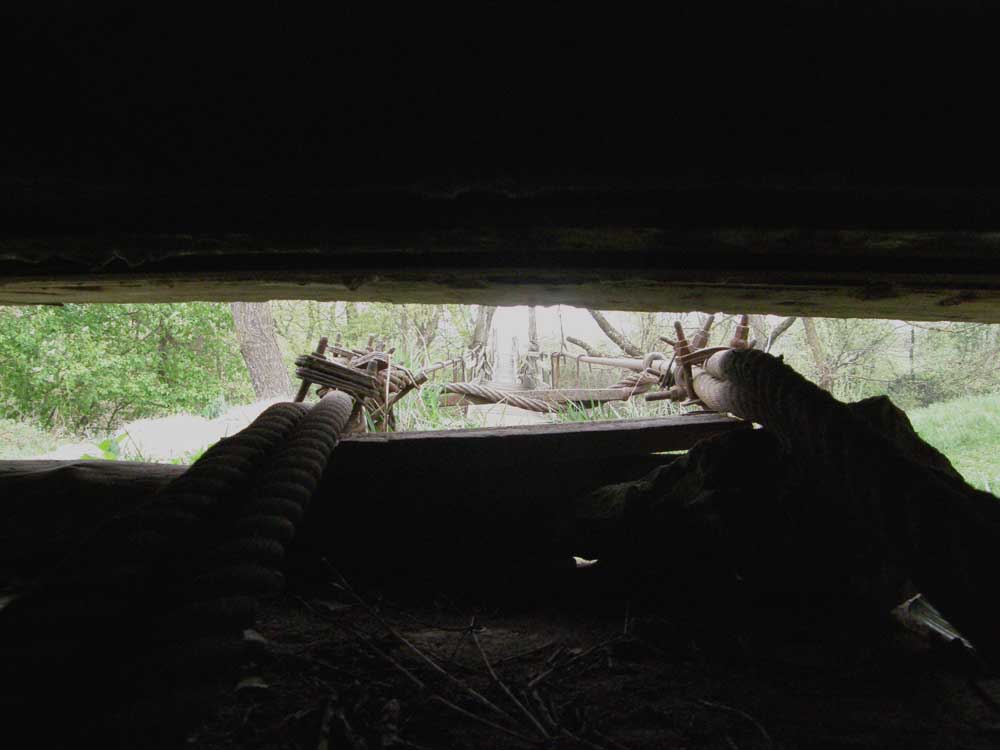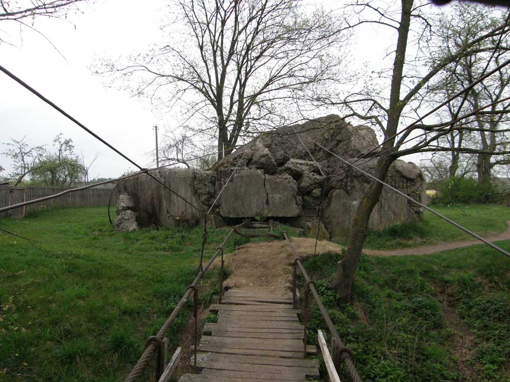 Однією із цікавих знахідок був ДОТ який слугує місцем для утримання підвісного мосту!! Дивіться самі!! Підірвану споруди пристосували у якості стопору для затягування тросу..