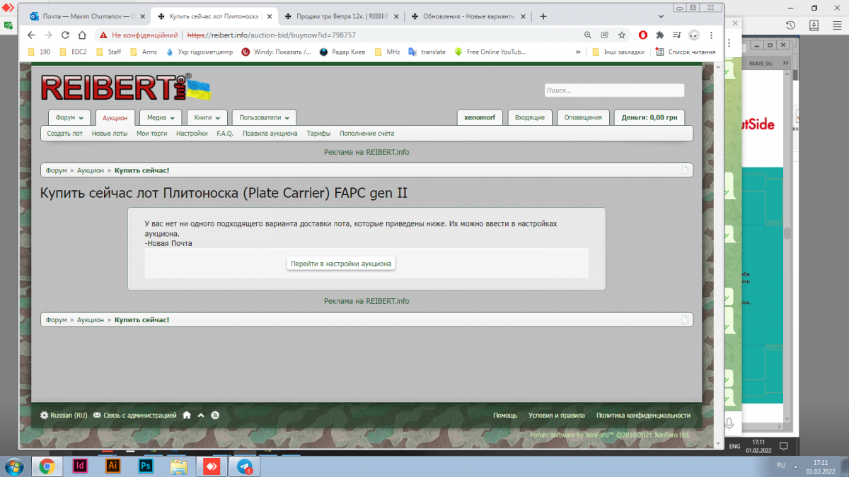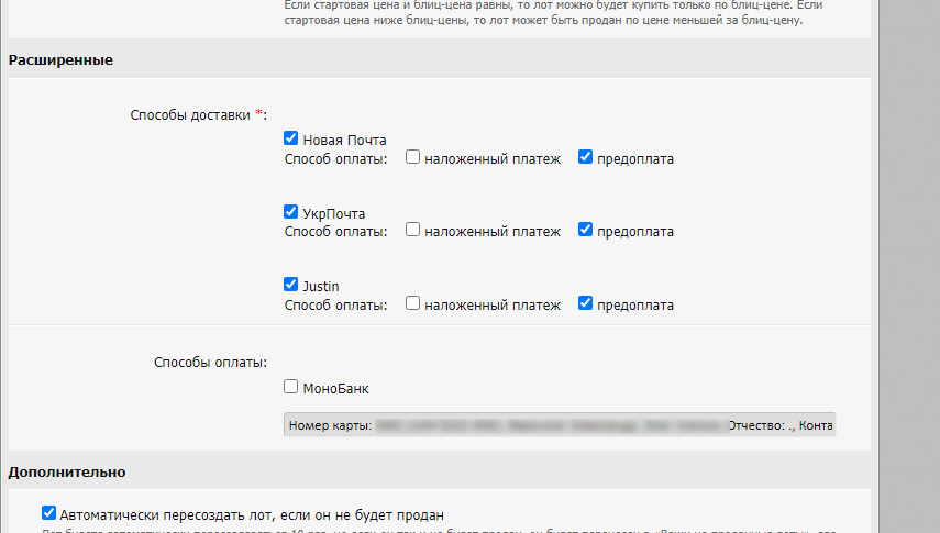 Добрый. Вчера у меня купили лот, при этом выбирали оплату через Монобанк. Сразу после покупки автоматически был создан диспут. Покупатель говорит, что нет данных, куда платить. Я же вчера после того, как прочитал эту тему, в настройках аукциона ввел свою карту Монобанка Вот ссылка на лот и диспут https://reibert.info/lots/vinty-magazinnoj-korobki-mosina-2-sht.758661/?disput_id=20151