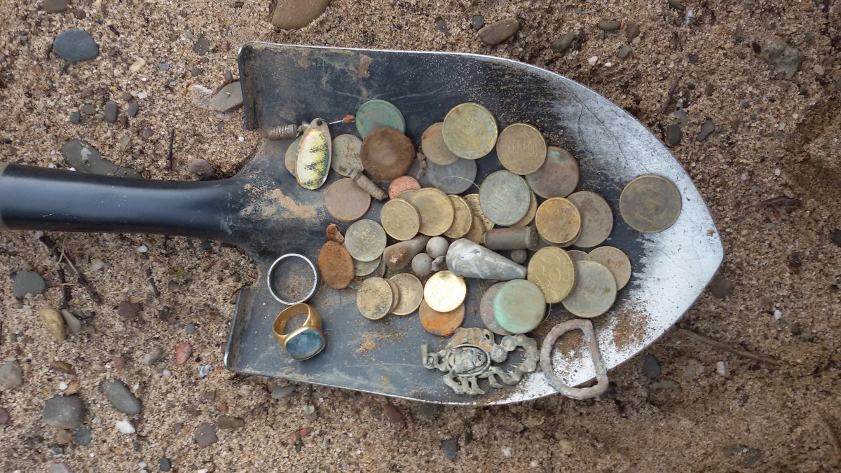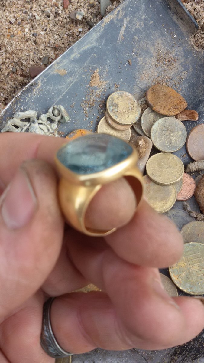 Пошёл сегодня опять на озеро откапать ящик угол которого зацепил,до ящика не дошёл,зато таки нашёл утереный перстенёк и к нему ещё один побольше,ну и денюжек немного