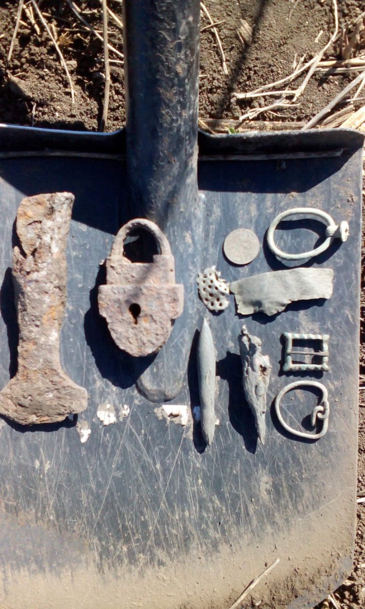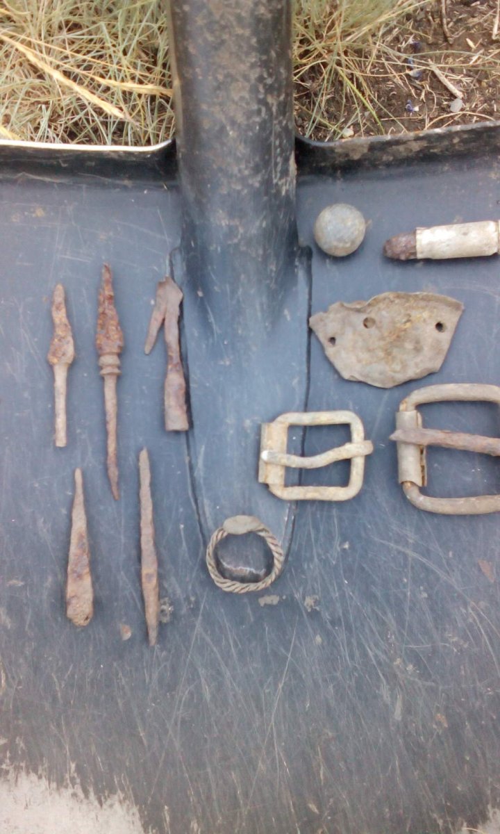 доброго времени форумчане! всех комрадов поздравляю с открытием нового копарского сезона!! у кого он начался раньше, у кого позже, но он начался! мой начался не давно, слабенько, но что то есть. прошу Вашей помощи в определении некоторых экземплярчиков. место находок юг Донецкой области. четвертое фото: 1. это может быть кистенек? материал железо, вес 120 грамм. 2. что, не знаю что. зернистый узор, вес 3 грама, материал серебро. возможно изделие кому из комрадов попадалось более целое, может подскажут??? 3. два предмета. кусочек, обломок бронзы с насечками какими то, возможно кто знает или какие предположения?? второе проколка или шило, материал медь. 4. это может быть обломаный верх пики?? материал железо. 5. предпологаю пряжка ленд-лиз? или ошибаюсь?? всем проявившим интерес к теме большое спасибо!!