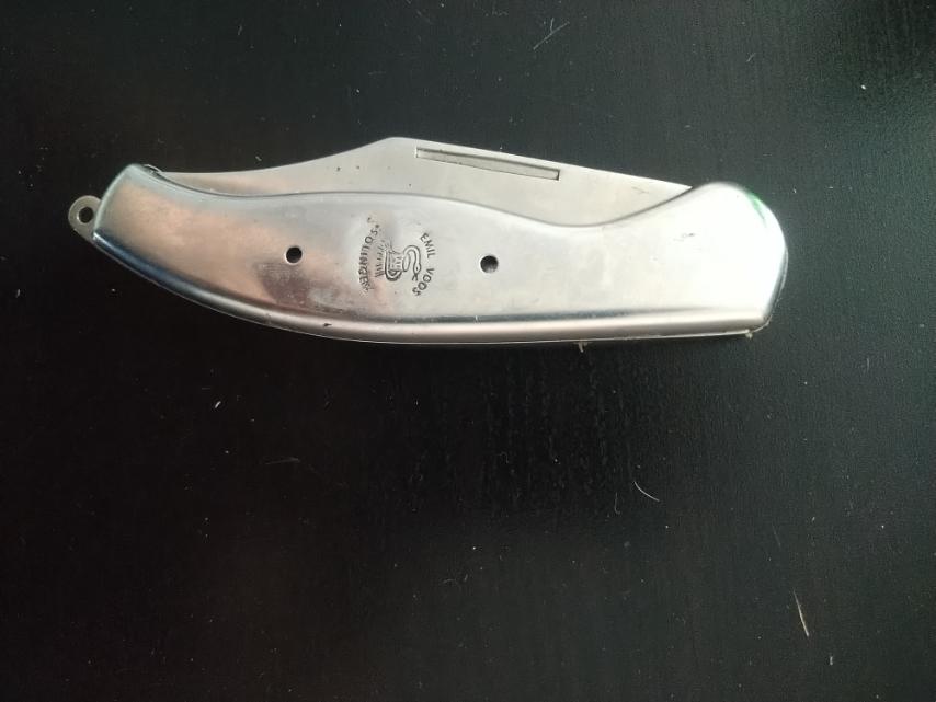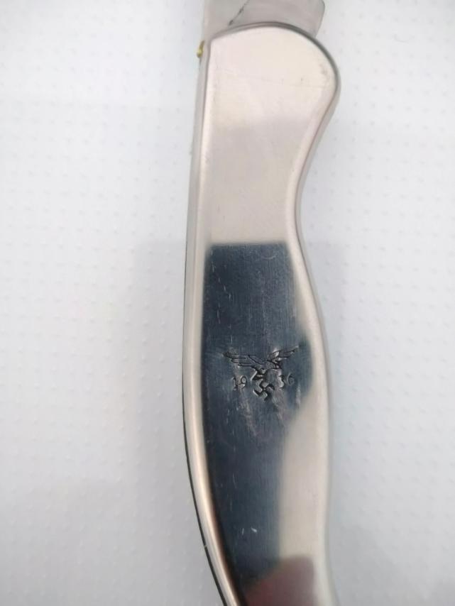 Даже с первого взгляда - совершенно современный дизайн, в те годы раскладные ножи были более прямой и грубой формы. Ну и маркировка тоже... Выше верно показали все, присоединяюсь к мнениям!