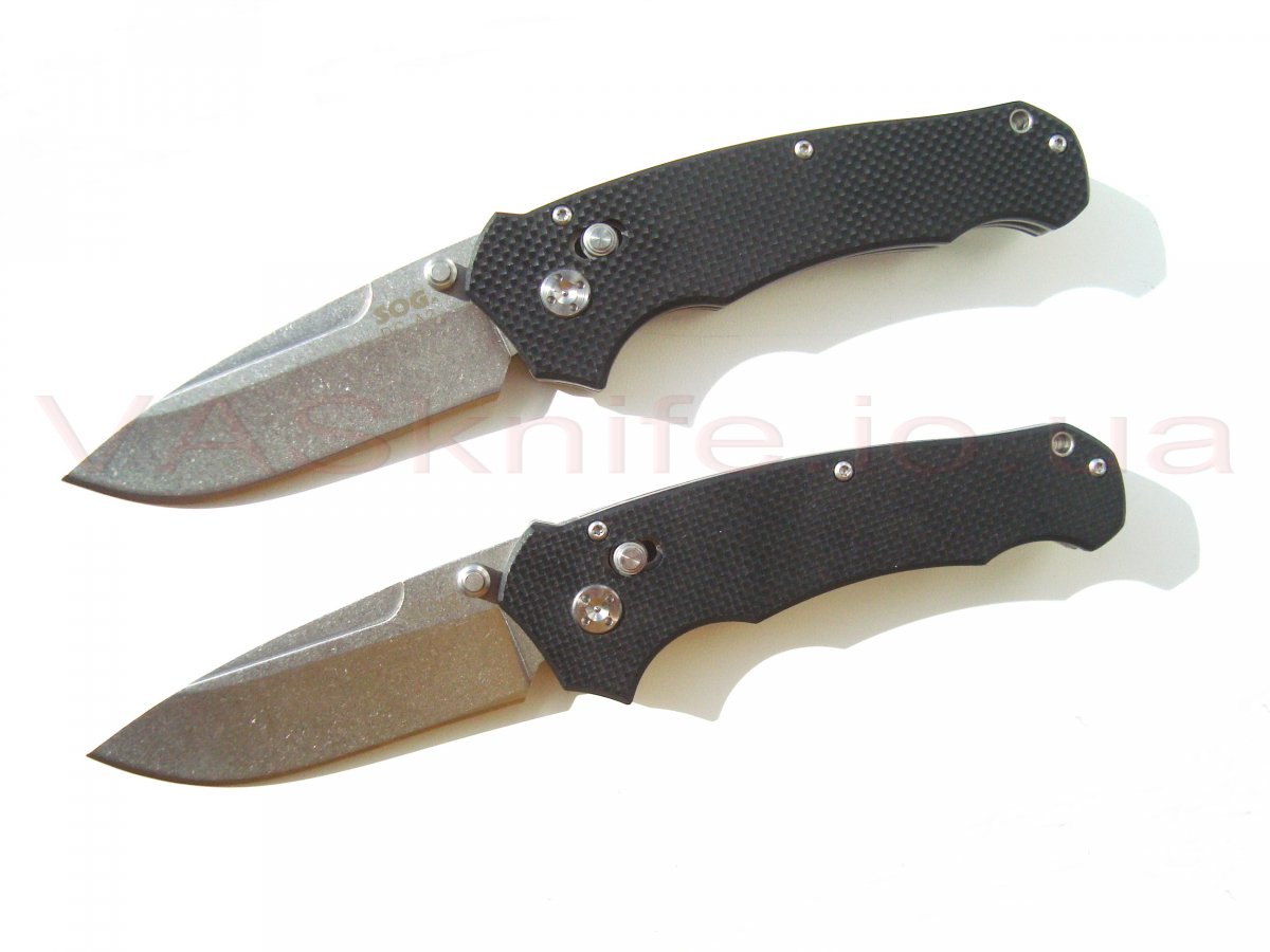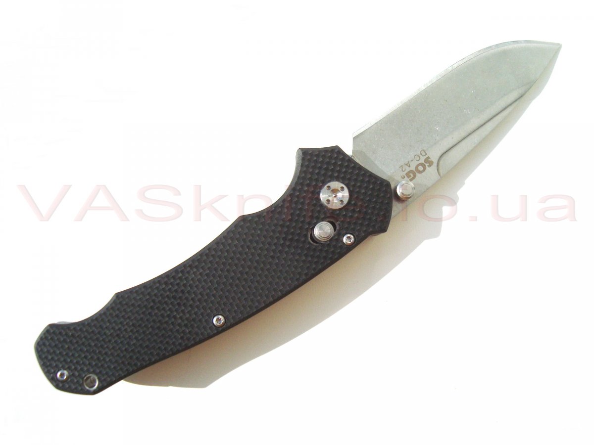 DC-A2 SOG (stonewash blade) + подарок (паракорд 2 м.) общая длина: 204 мм длина клинка: 83 мм длина режущей кромки: 83 мм (по кривой) толщина клинка: 3.2 мм толщина спуска у рк: 0.65-0.75 мм (примерно) материал клинка: 8Cr15MoV (56-58 HRC) отделка клинка: stonewash материал рукояти: G-10 (black) толщина рукояти: 13 мм тип замка: Axis Lock клипса: устанавливается в одно положение вес: 146 гр производитель: DC Outdoors Co., Ltd. изготовлено: Китай доставка: бесплатно по Украине ("склад-склад" Нова Почта, Деливери, САТ, Интайм) цена: $19.00 (цену в гривнах можно рассчитать умножив 19.00 на курс продажи доллара. см. здесь внизу, справа, - приватбанк - курсы карт или здесь)