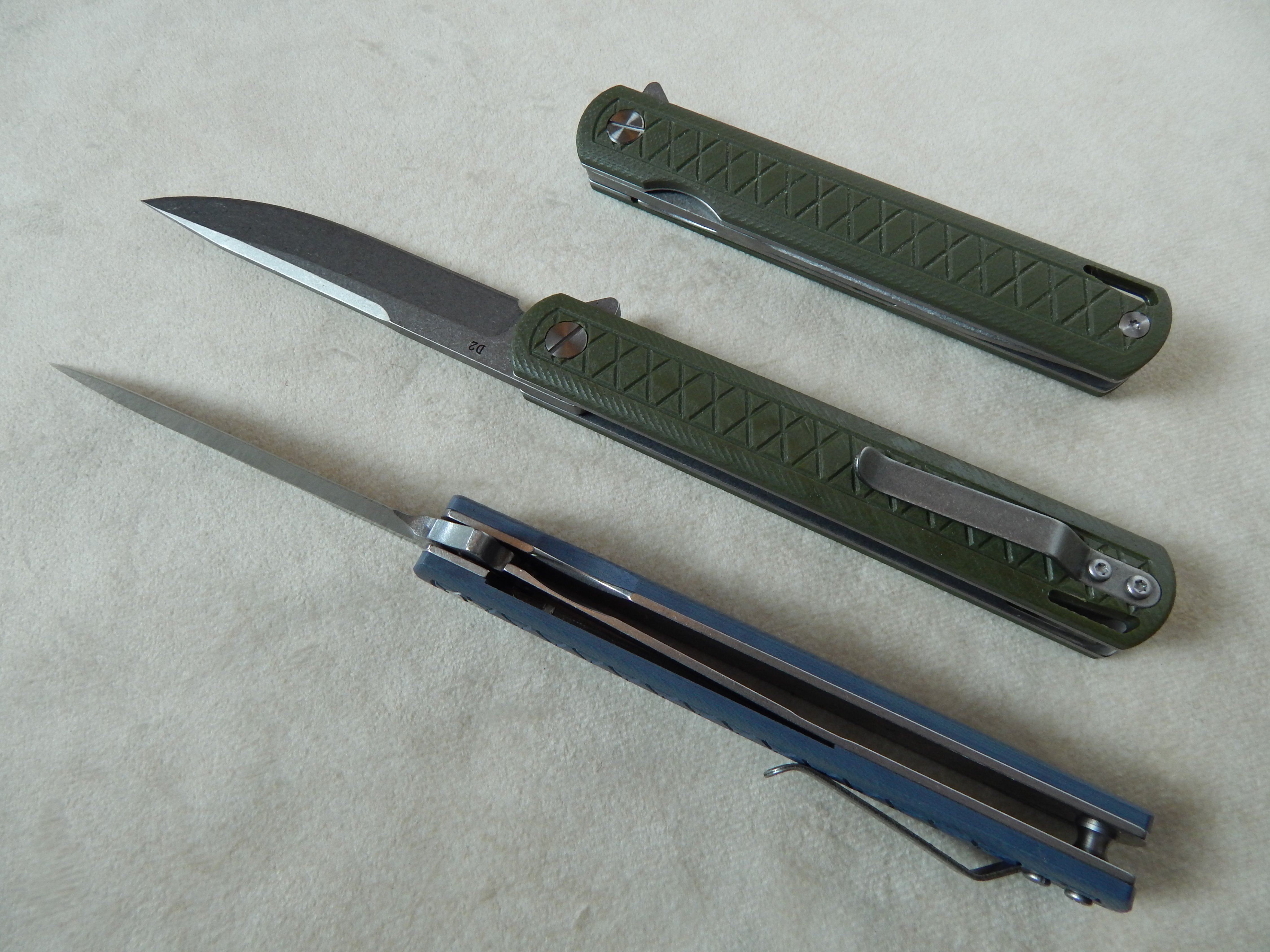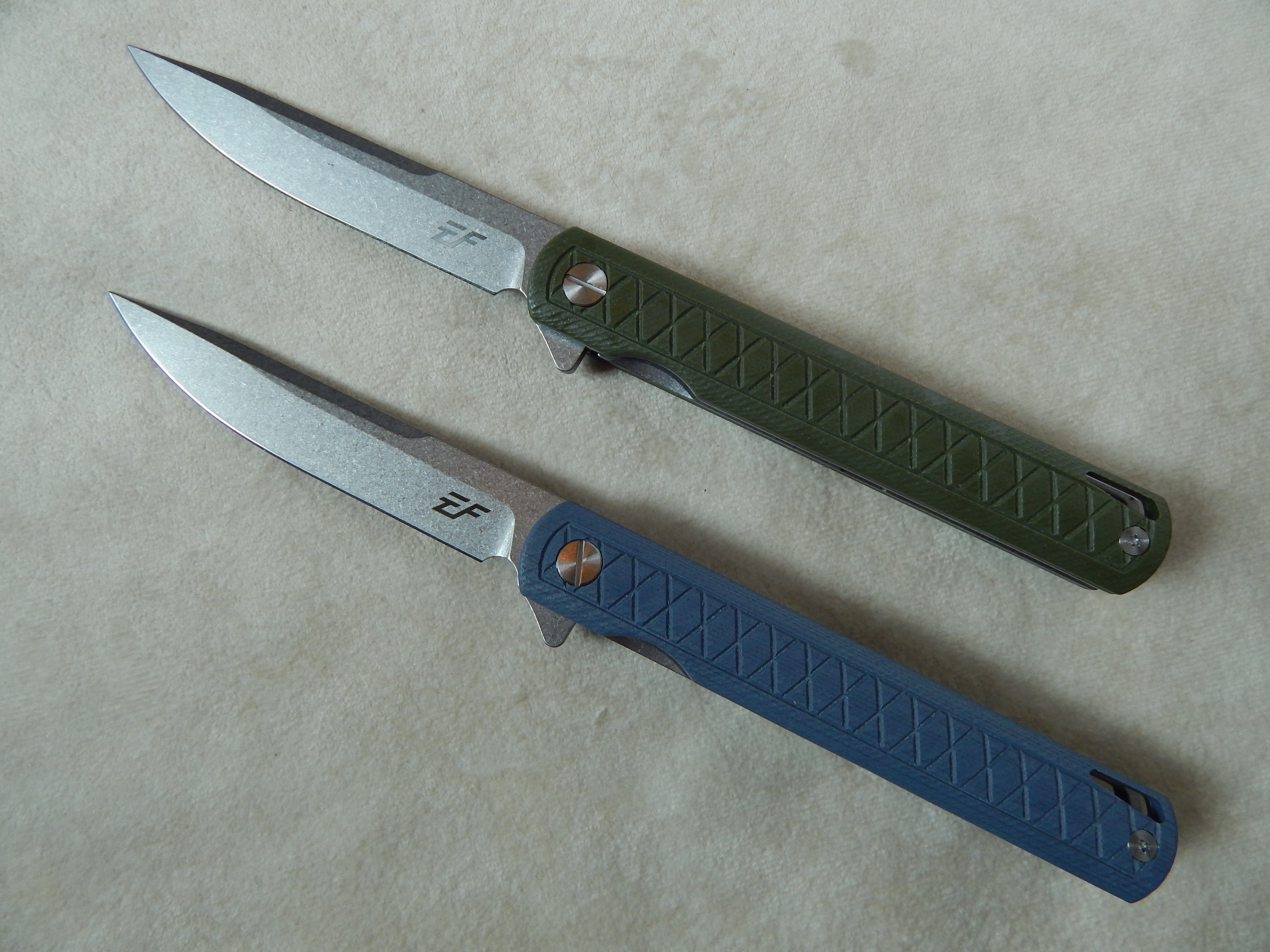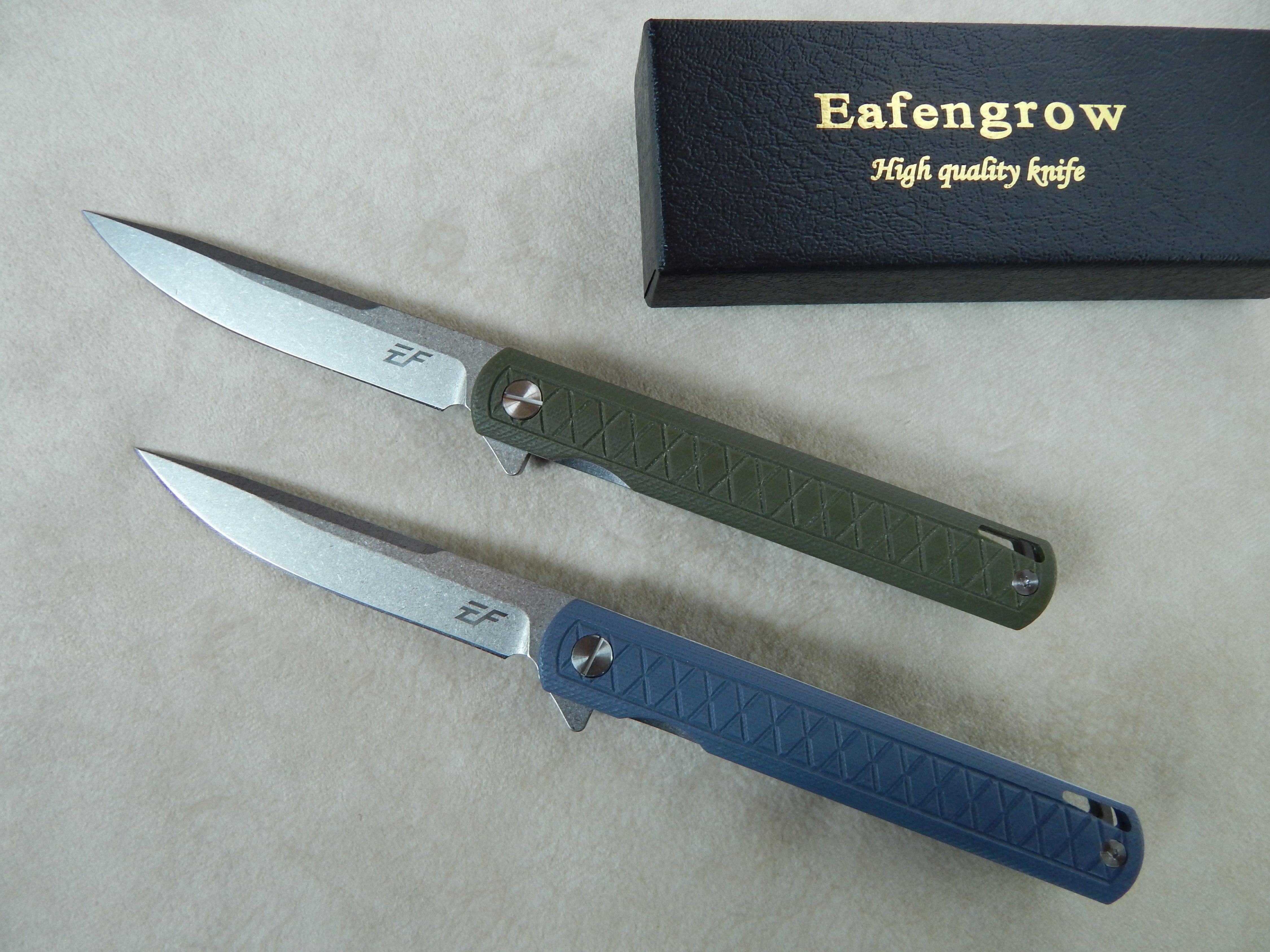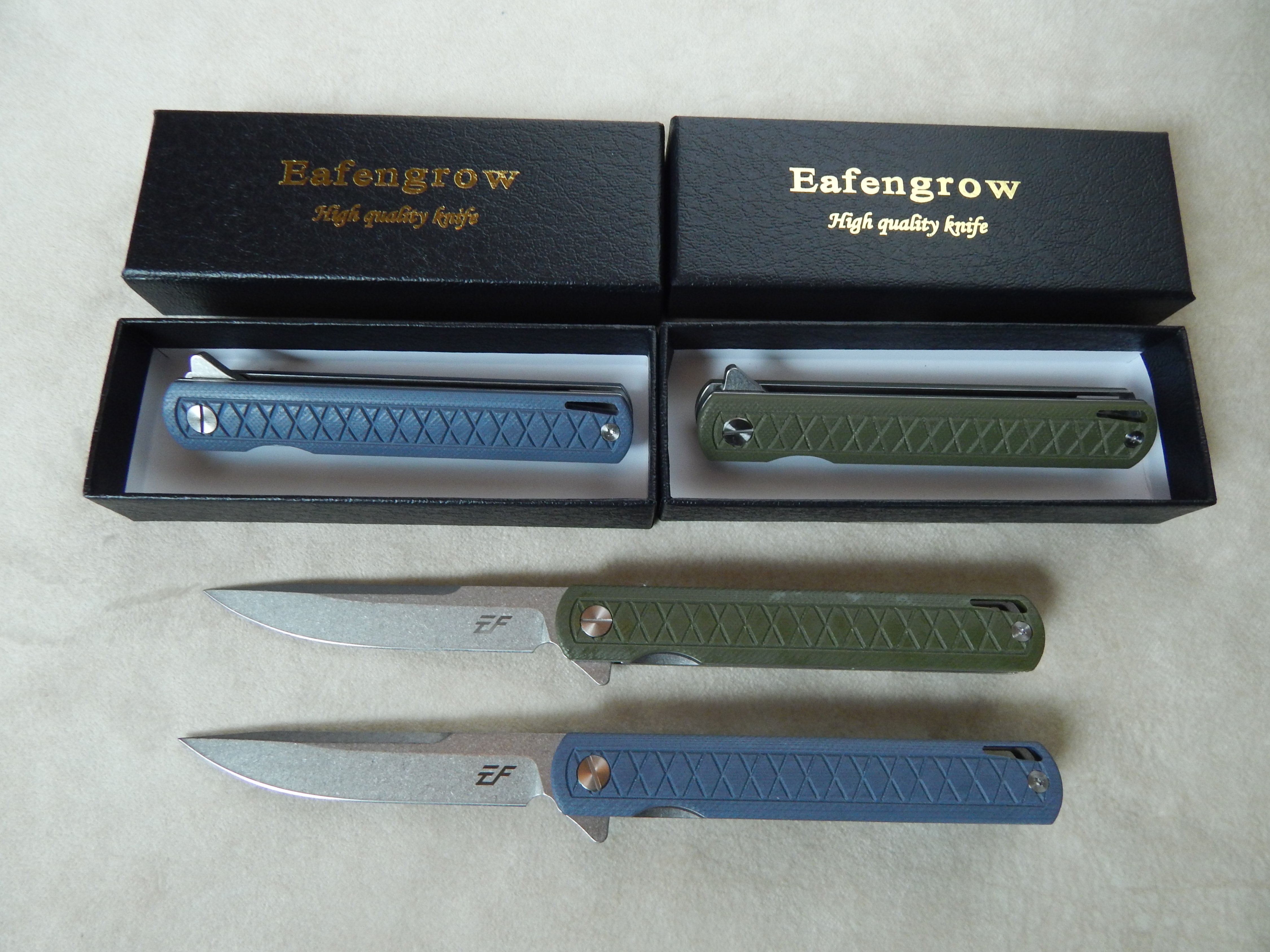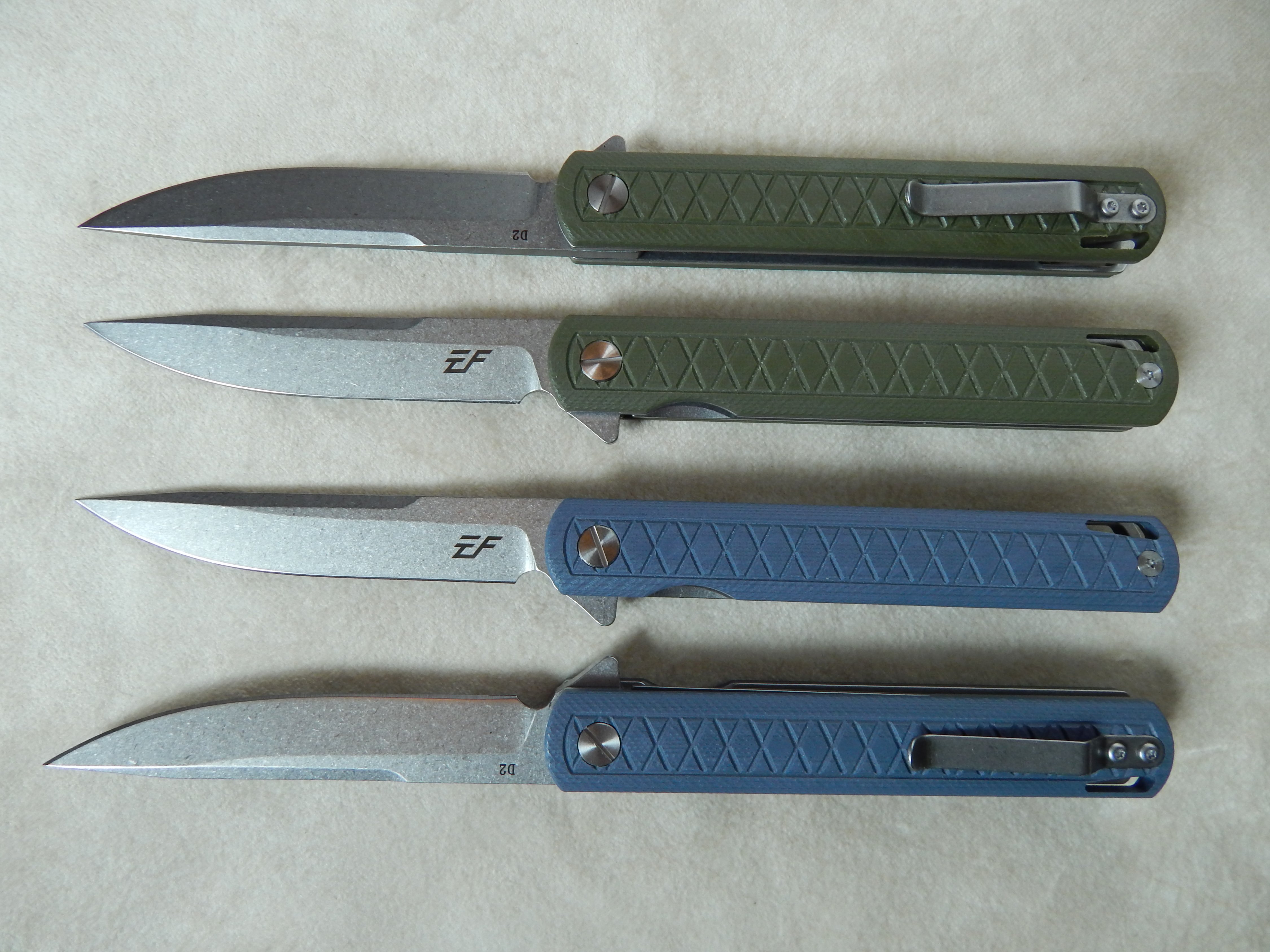 Новый, стильный, фирменный складной нож для повседневного ношения - Eafengrow ef16. Есть с зеленой и синей ручкой. Синий цвет в реальности ближе к серому, фото немного искажает цвет. Замок-лайнер с шариком, механика отличная, на подшипниках. Общая длина: 214 мм Длина лезвия: 95 мм Длина ручки: 119 мм Толщина лезвия: 3.8 мм Система: стальной шарикоподшипник Твёрдость: 58-59 HRC Материал лезвия: d2 Материал рукоятки: g10 Вес : 106 г Цена - 750 гр. Видео -