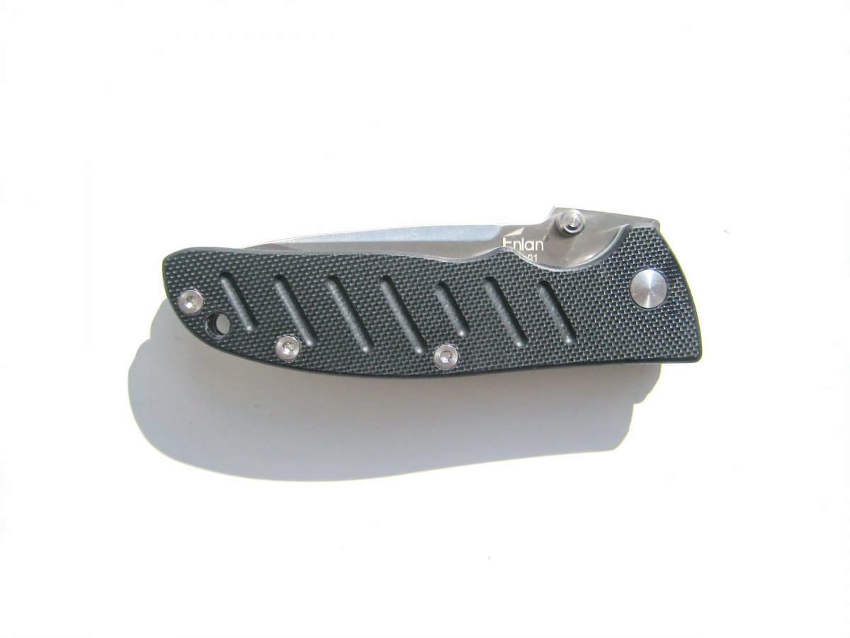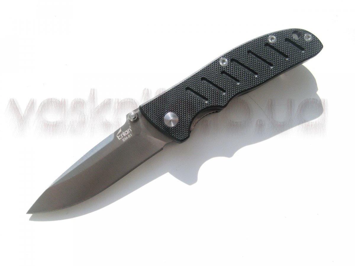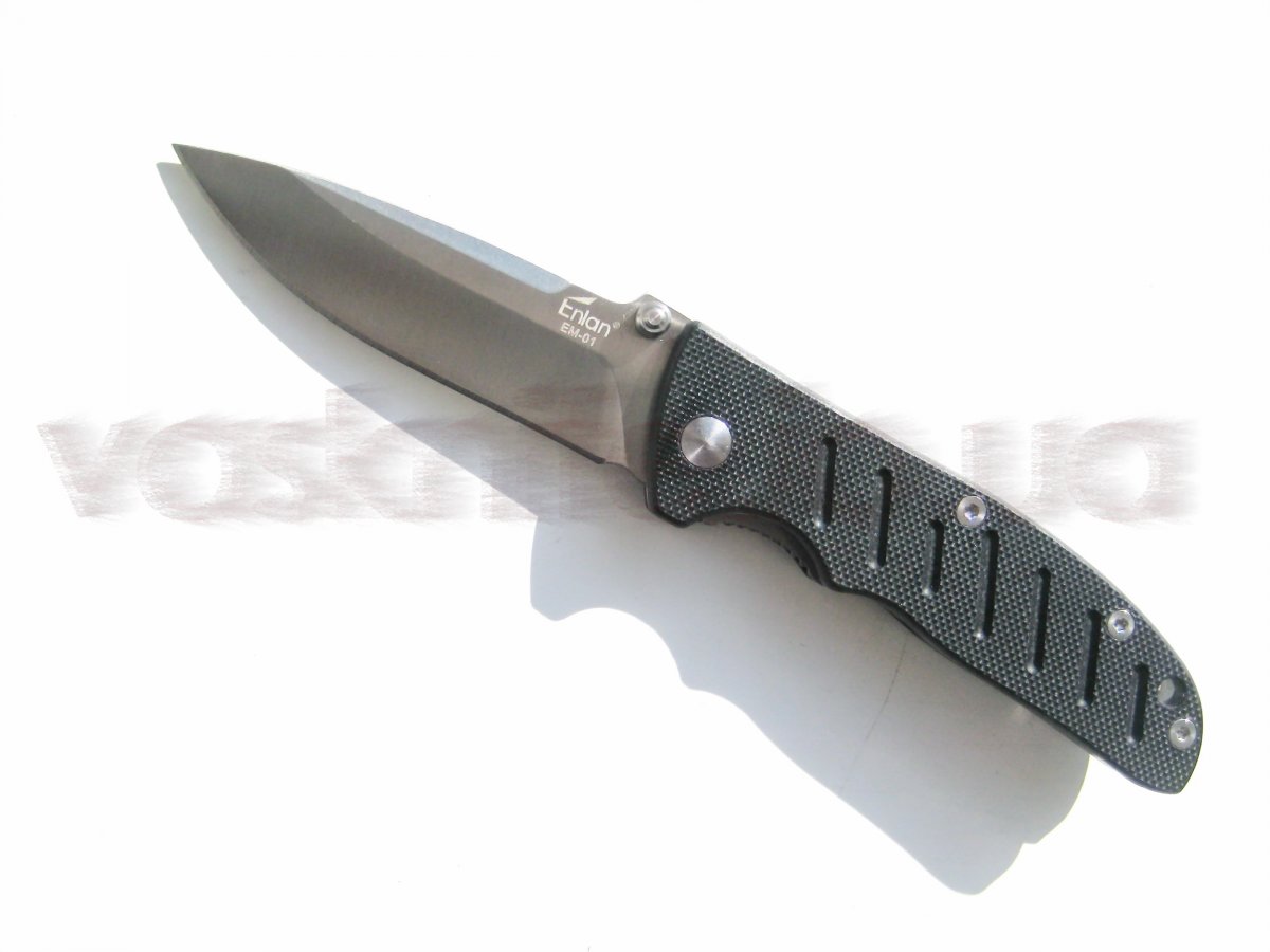 Enlan EM-01 + подарок (паракорд 2 м.) общая длина: 161 мм длина клинка: 70 мм длина режущей кромки (по кривой): 72 мм толщина клинка: 2.5 мм толщина спуска у рк: 0.6-0.7 мм (примерно) тип замка: Liner Lock сталь: 8Cr13MoV (56-58 HRC) отделка клинка: satin материал рукояти: G-10 (черный) толщина рукояти: 11 мм клипса: устанавливается в одно положение вес: 74 гр. производитель: Enlan Cutlery Co. изготовлено: Китай доставка: бесплатно по Украине ("склад-склад" Нова Почта, Деливери, САТ, Интайм) Цена: $ 10.60 (цену в гривнах можно узнать умножив 10.60 на курс продажи доллара приватбанком)