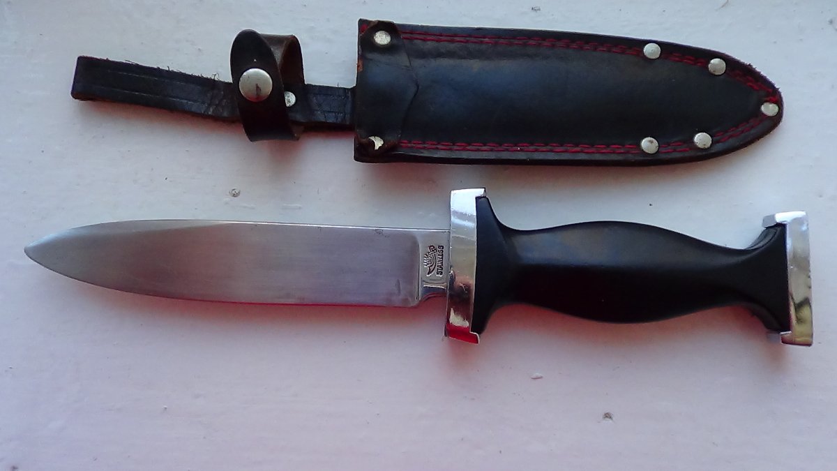 Достаточно редкий нож ERN Solingen. Думаю, 60-е года. Общая длина-25,2см, клинок-14см, обух-5,5 Цена-3350грн.