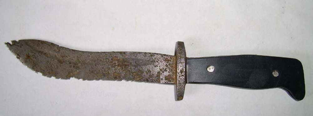 Я уже видел такой на форуме, только относительно целый, по сравнению с Вашим.Это НЕ ФИНКА.Это боевой нож, как сказали немецкий, типа траншейника.Другие же сказали, что это серийные СССРовские охотничьи ножи. Выбросите бяку.Нет ей цены.