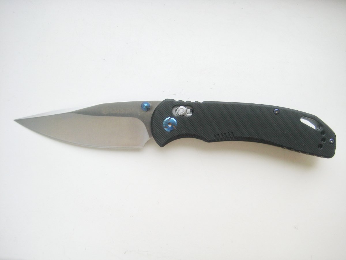 Ganzo G7531-BK + подарок (паракорд 2 м.) общая длина: 211 мм длина клинка: 91 мм длина режущей кромки (по кривой): 90 мм толщина клинка: 3.1 мм толщина спуска у рк: 0.5-0.6 мм (примерно) толщина рукояти: 13 мм материал клинка: 440C (58-60 HRC) отделка клинка: satin материал рукояти: G-10 (black) тип замка: Axis Lock клипса: устанавливается в два положения вес: 127 гр производитель: Ganzo Tool Manufacturer изготовлено: Китай доставка: бесплатно по Украине ("склад-склад" Нова Почта, Деливери, САТ, Интайм) Цена: $ 20.90 (цену в гривнах можно рассчитать умножив 20.90 на курс продажи доллара Приватбанком)
