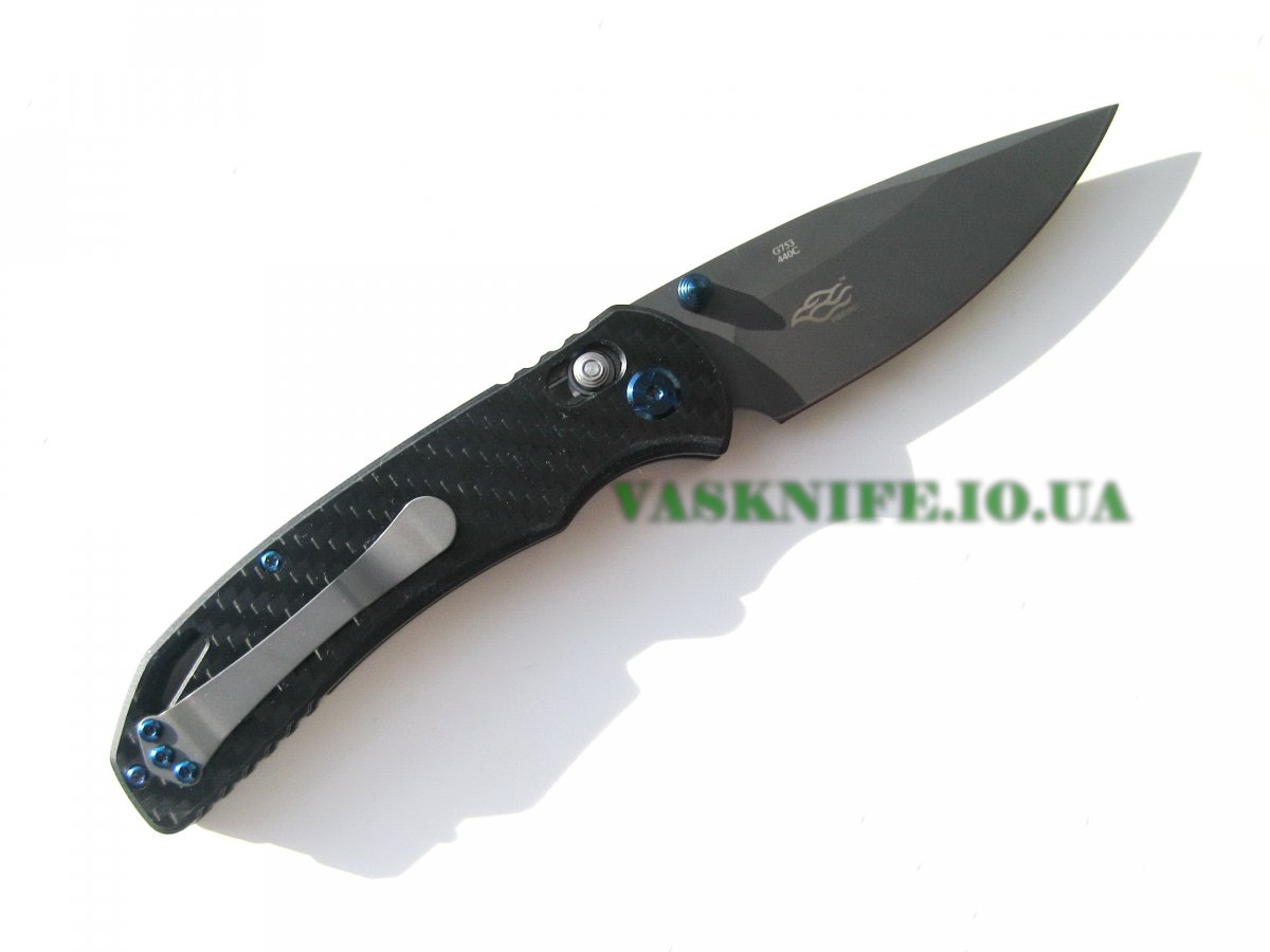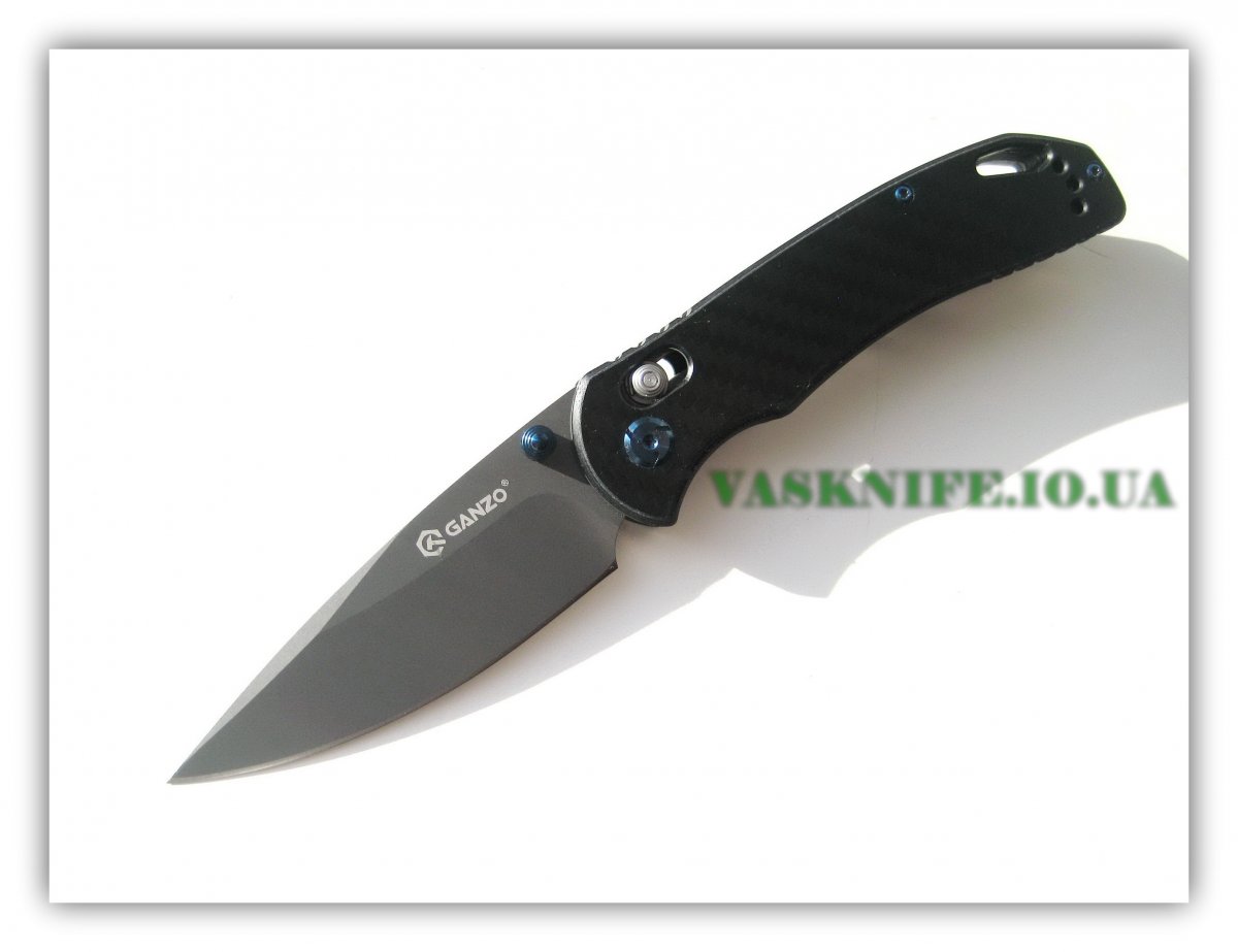 Ganzo G7533-CF + подарок (паракорд 2 м.) общая длина: 211 мм длина клинка: 91 мм длина режущей кромки (по кривой): 90 мм толщина клинка: 3.1 мм толщина спуска у рк: 0.5-0.6 мм (примерно) толщина рукояти: 13 мм материал клинка: 440C (58-60 HRC) отделка клинка: защитное покрытие (titanium gray) материал рукояти: carbon (black) тип замка: Axis Lock клипса: устанавливается в два положения вес: 127 гр производитель: Ganzo Tool Manufacturer изготовлено: Китай доставка: бесплатно по Украине ("склад-склад" Нова Почта, Деливери, САТ, Интайм) Цена: $ 22.60 (цену в гривнах можно рассчитать умножив 22.60 на курс продажи доллара Приватбанком)