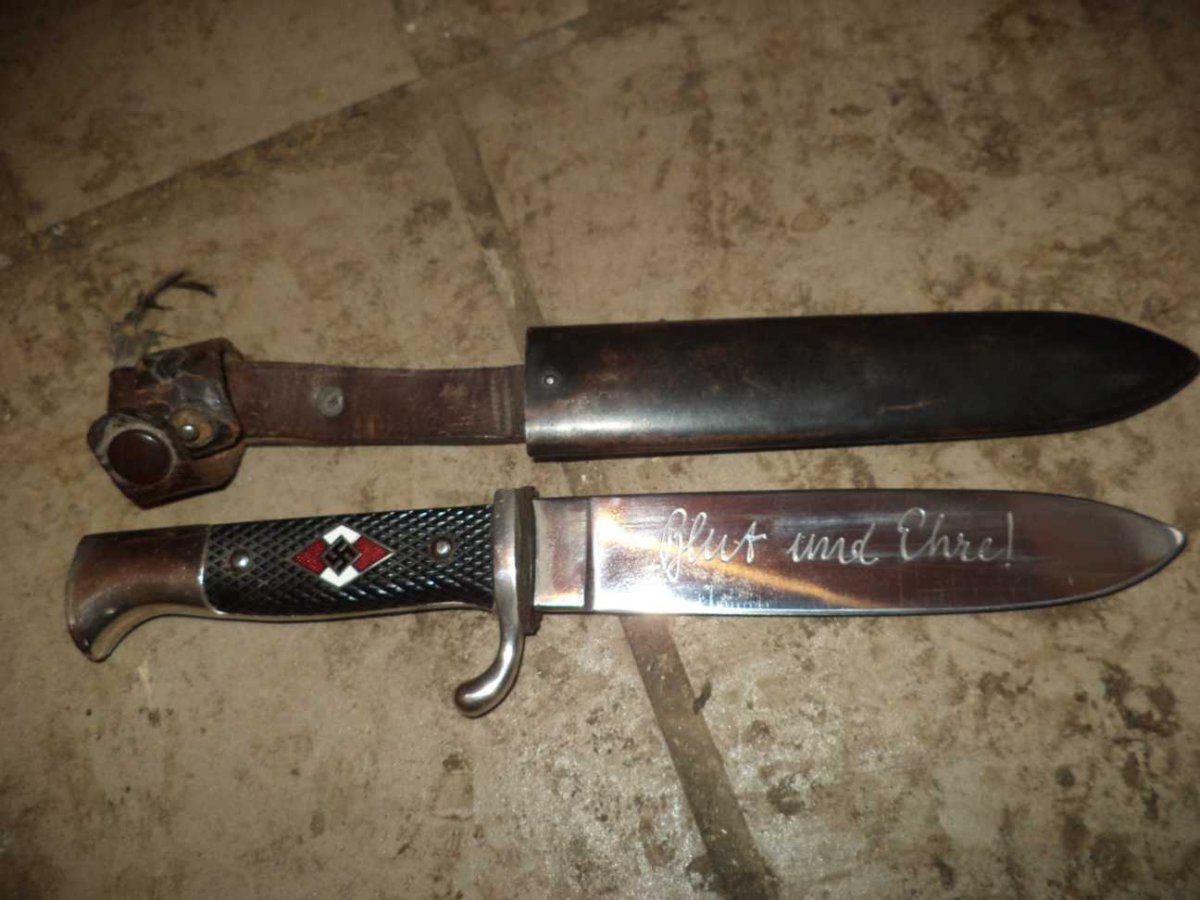 Послевоенное производство. Это оригинальный нож скаута в который вставлена эмблема ГЮ.