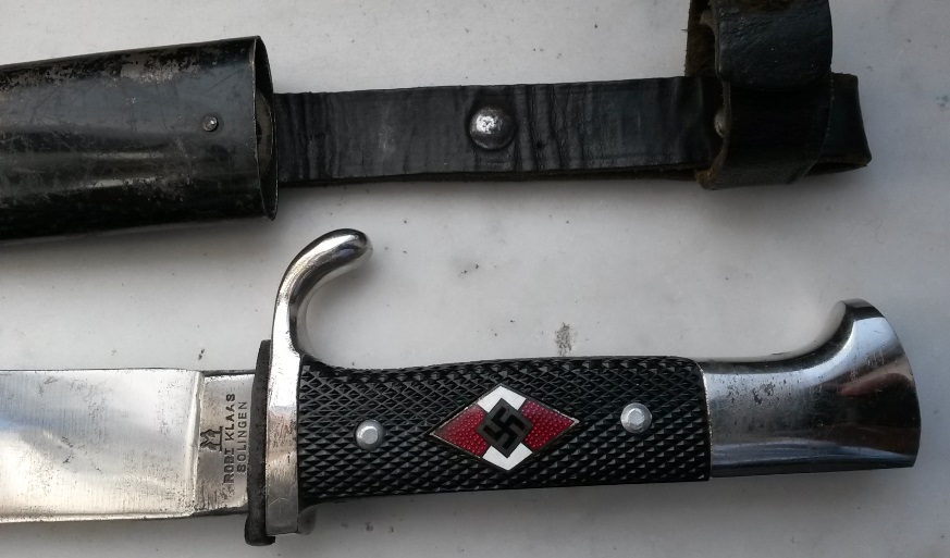 Алюминевые заклепки и рукояти на ХЮ (скаутах) пошли сразу с 1945го,стальные ножны еще какое то время выпускались,но отличались кроссшлифовкой , покрытием и кнопкой.На ромбе из этой темы даже не эмаль.Те поздние скаутские ножны про которые Вы спарашивали магнитные ли,как сказал Саша "увидет даже слепой на ущуп",такие же точно на современных копиях.Простите.Дело каждого верить или нет.Но нож из темы на мой взгляд в коллекции не нужен.Обратите внимание ,на фэнтэзи DJ и Олимпийских ножах, так же стоят алюминивые рукояти и алюминивые заклепки,что и указывает на их послевоенное происхождение.