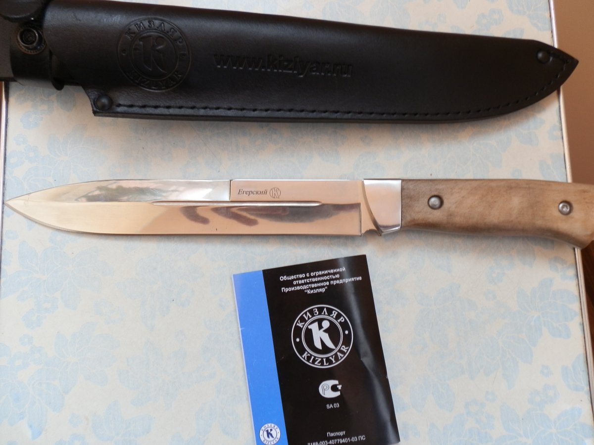 Цена - 1100. Абсолютно новый Характеристики Полная длина 323 мм Длина клинка 198±5 мм Толщина клинка 3.6±1.5 мм Ширина клинка 31 мм Геометрия клинка копьевидная, с долами, на части обуха притупленная заточка Материал клинка сталь Z60CDV14 Обработка клинка полированный Твердость 56-58 HRC Материал рукояти кавказский орех Толщина рукояти 25 мм Конструкция плашки приклепаны к хвостовику Ножны/чехол поясные ножны из натуральной кожи Вес с ножнами 330 г. Вес без ножен 245 г. Примечание не относится к холодному оружию Видио из сети Цена в магазине http://kizlyar.kiev.ua/catalog/75/117.htm l