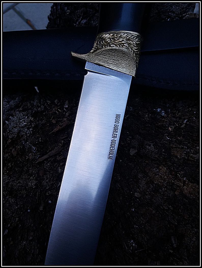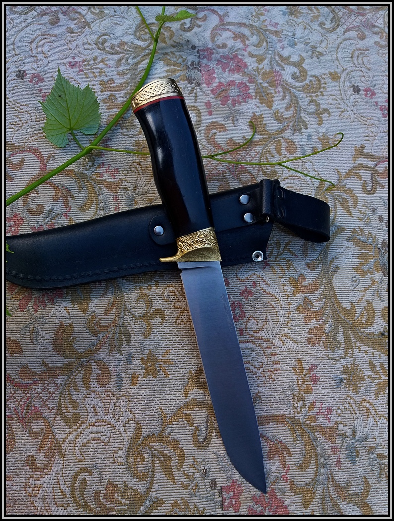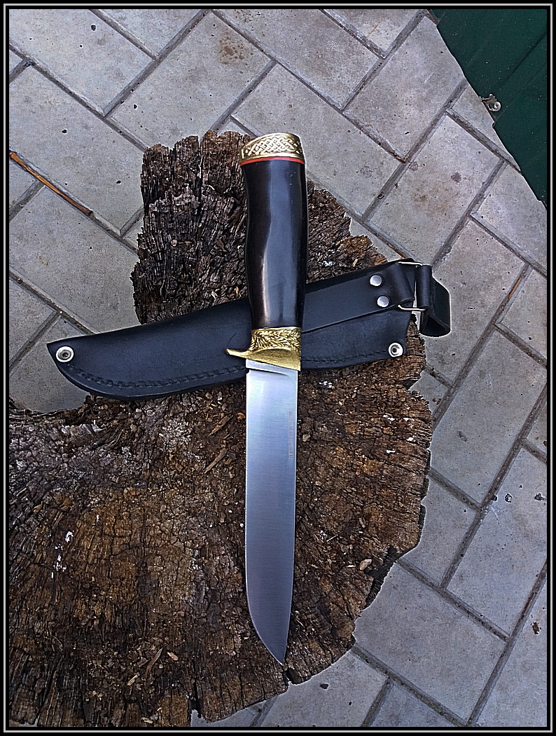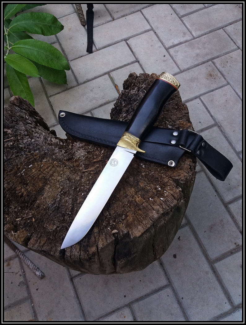 Нож "Медвежий" .Сталь клинка N690.Длина клинка 160мм,ширина с 28мм и толщина с 3.8мм на клин.Литье бронза.Дерево граб. Изготовлен мною.