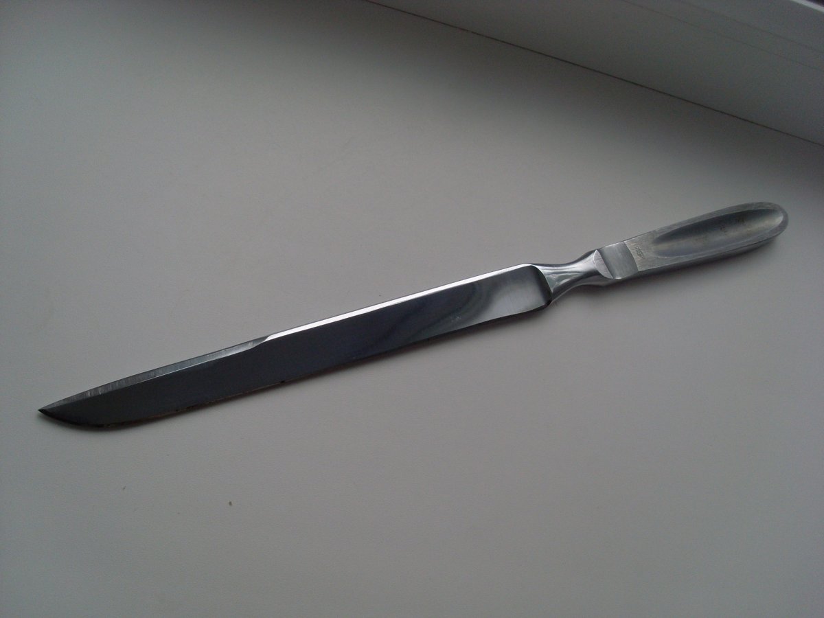 Вообще то это именно ампутационный нож . Зачем говорить о том чего не знаете и не понимаете? https://ru.m.wikipedia.org/wiki/Ампутационный_нож Секционными называется набор хирургического инструментария в который входит и ампутационный нож, который еще имеет разницу по размеру. http://www.medical-enc.ru/17/section_instrument.shtml