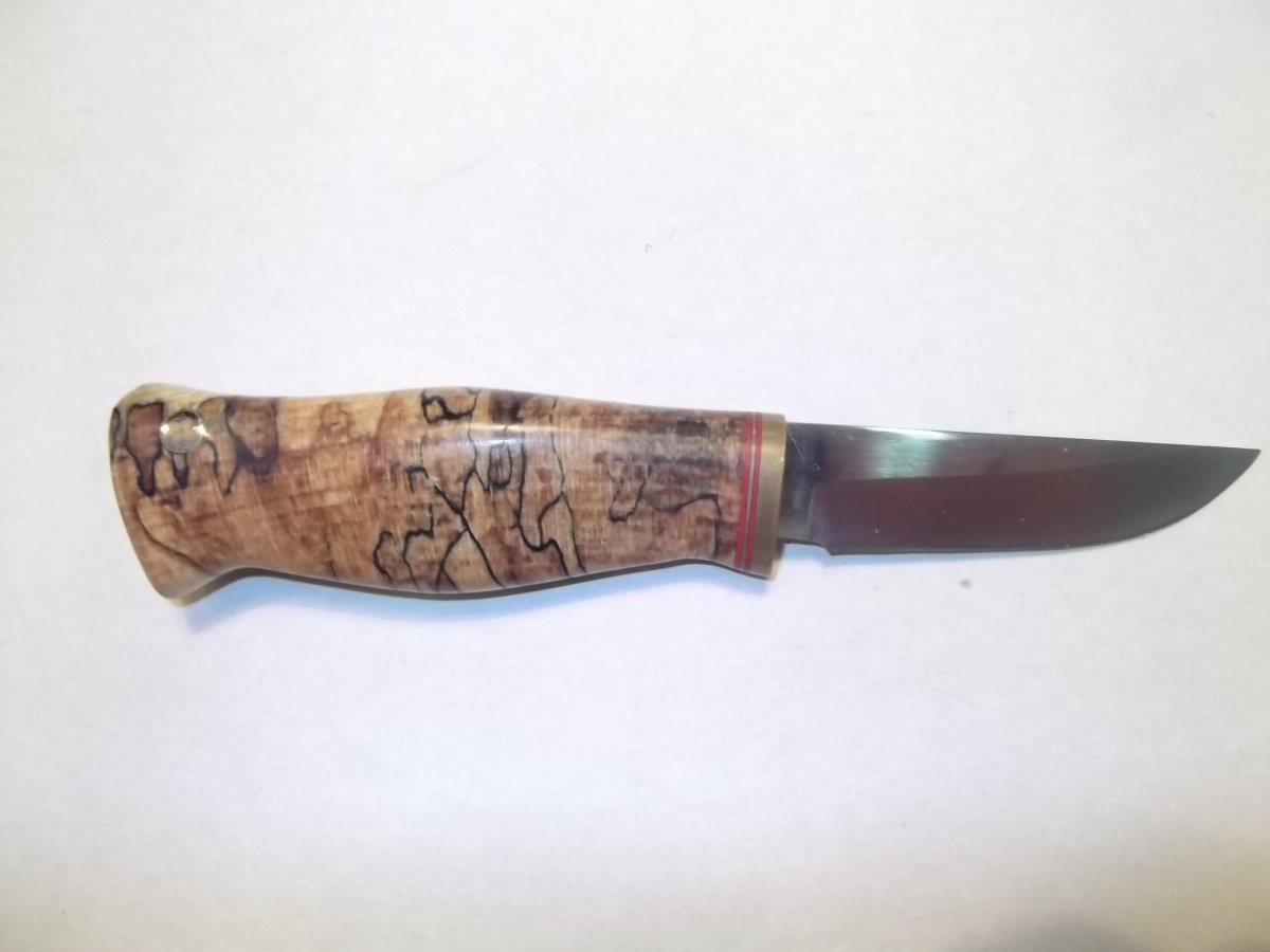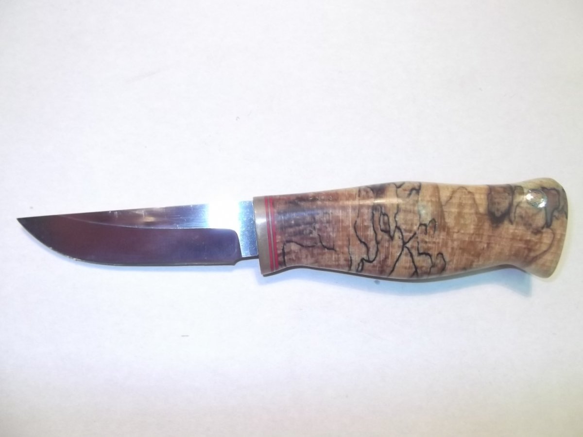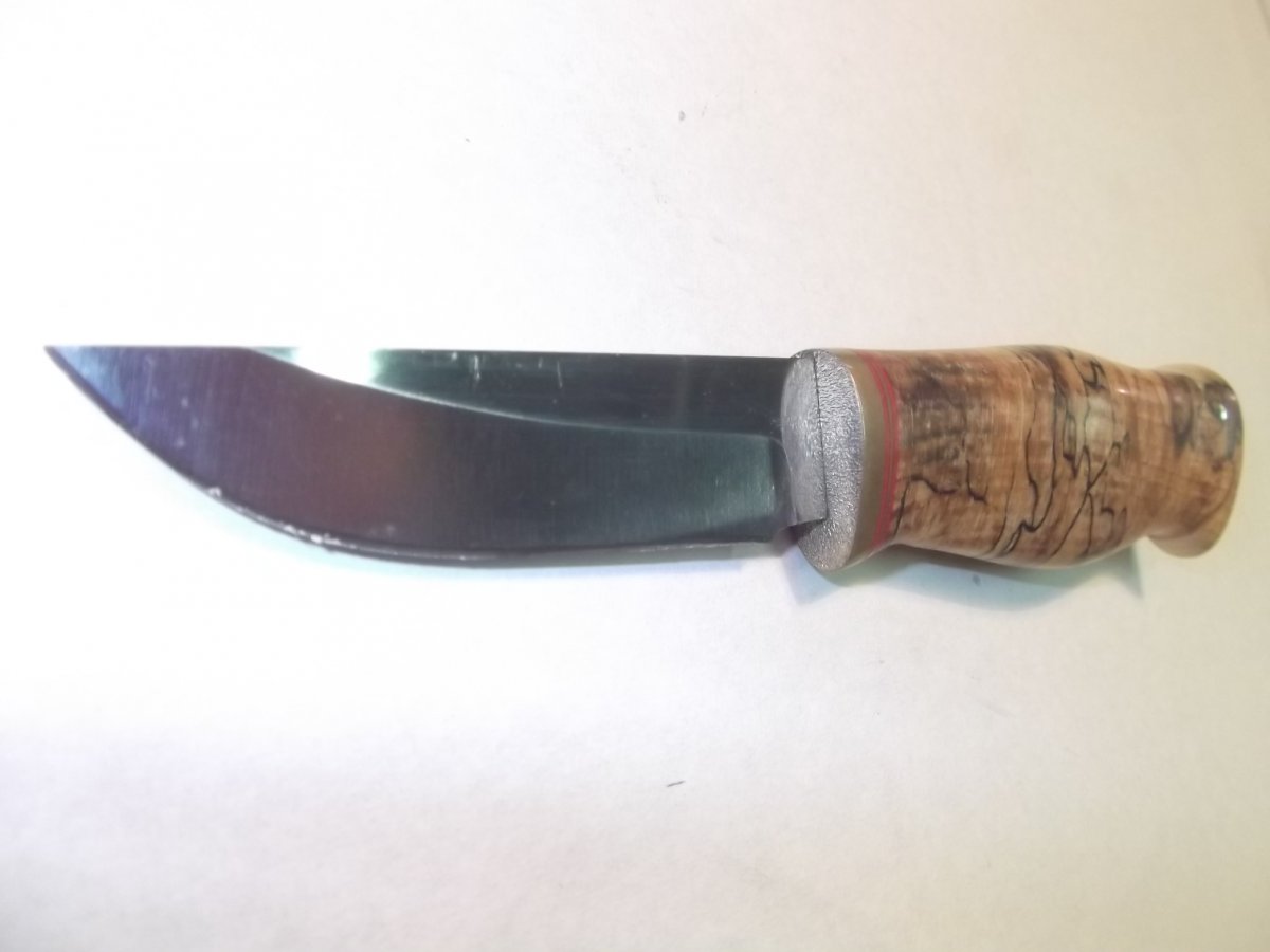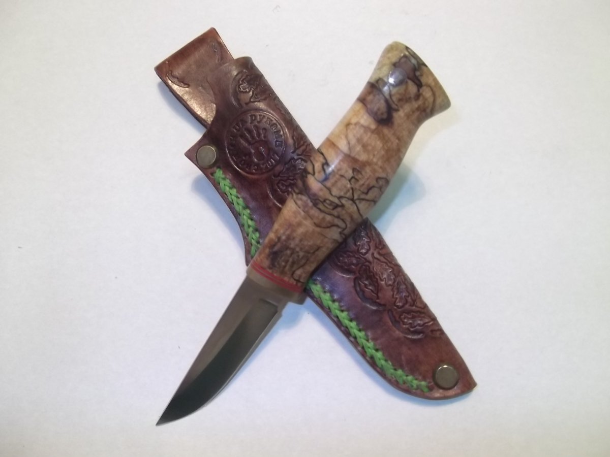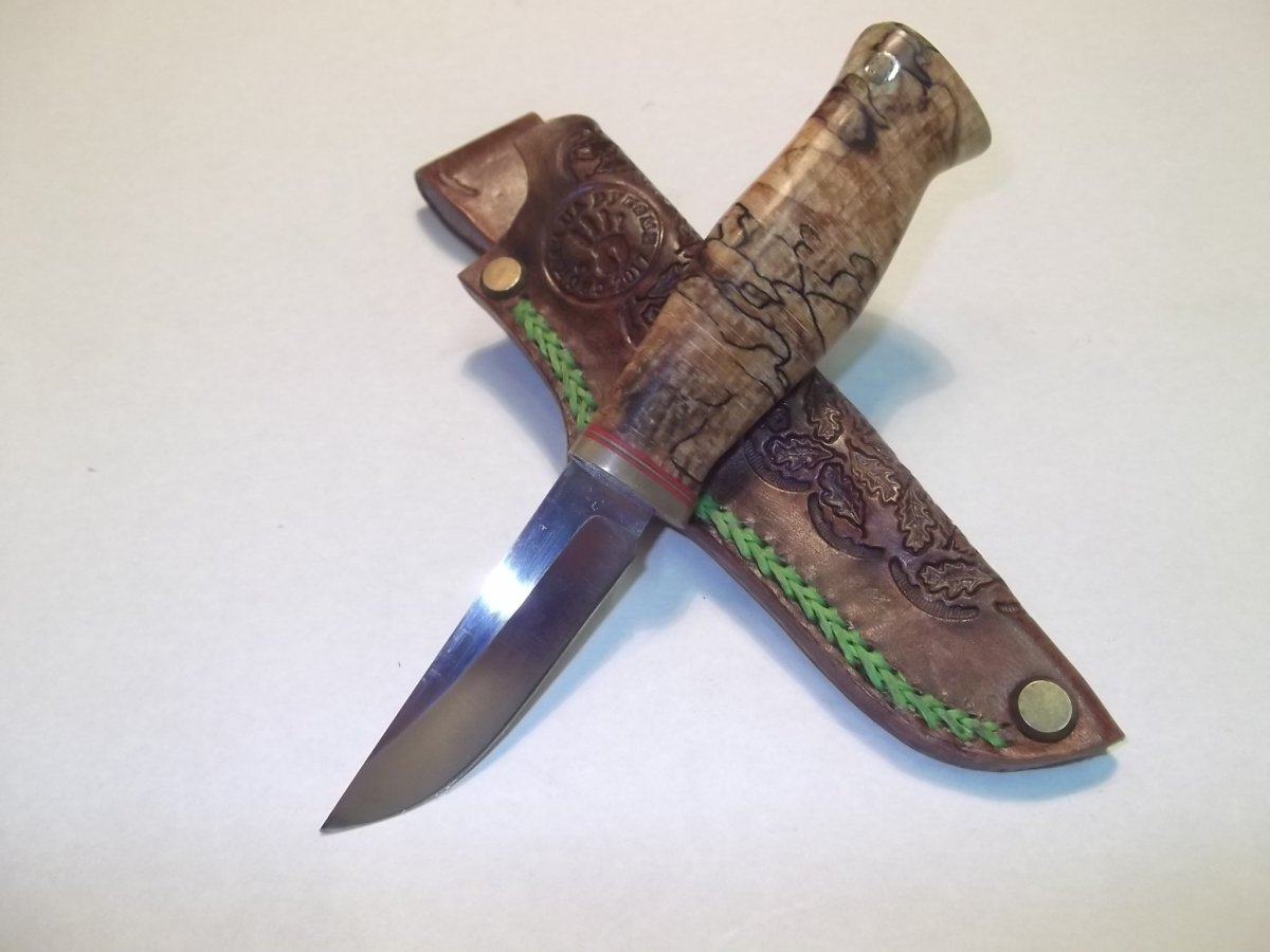 клинок сталь -р6м5 длина клинка - 70мм ширина клинка -20 мм обух -у основания 2.0 мм рукоятка стабилизированный шпальт бука длина рукоятки -95 мм мазаичный пин - 6,5 ножны кожа растительного дубления 2-2,2 мм , хотелка 1200гр . оплата на карту П-Б . Отправка за счет покупателя Н-П , интайм ,деливери , возникнут вопросы пишите