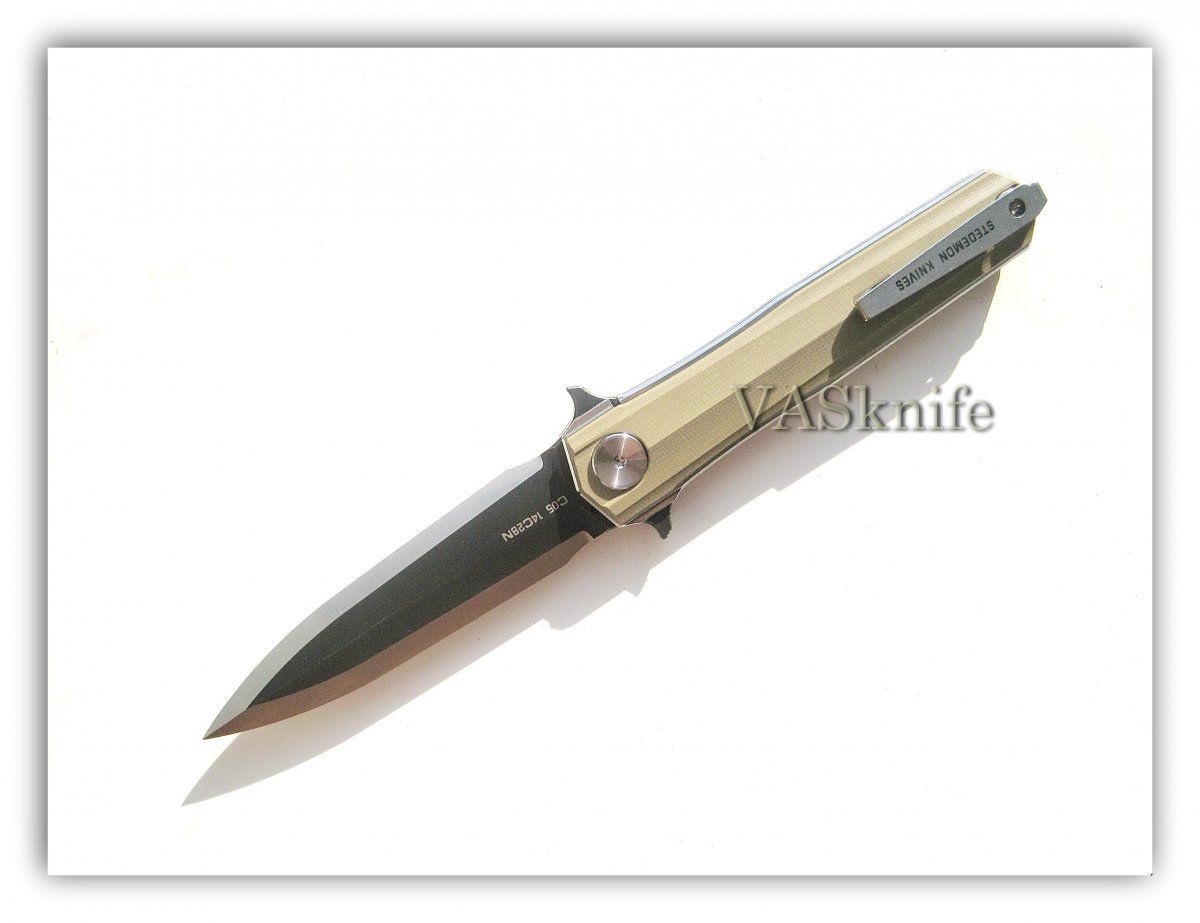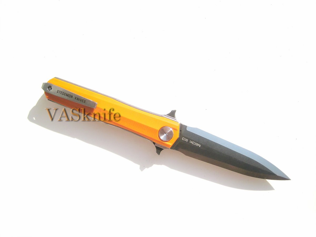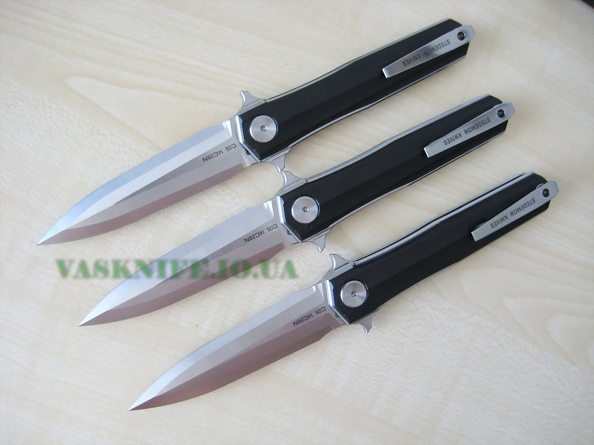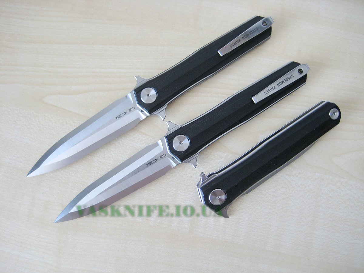 Stedemon HAN С-0501 black (satin+stonewash) + подарок (паракорд 2 м.) общая длина: 215 мм длина клинка: 95 мм длина режущей кромки (по кривой): 88 мм толщина клинка: 3.8 мм толщина спуска у рк: 0,1-0,2 мм материал клинка: 14C28N (57-58 HRC) отделка клинка: satin+stonewash материал рукояти: G-10 (black) толщина рукояти: 16 мм тип замка: Liner Lock осевой узел: керамический шарикоподшипник клипса: устанавливается в одно положение вес: 127 гр производитель: Stedemon Knife Company изготовлено: Китай доставка: бесплатно по Украине ("склад-склад" Нова Почта, Интайм) Цена: $ 48.90 (цену в гривнах можно рассчитать умножив 48.90 на курс продажи доллара Приватбанком)