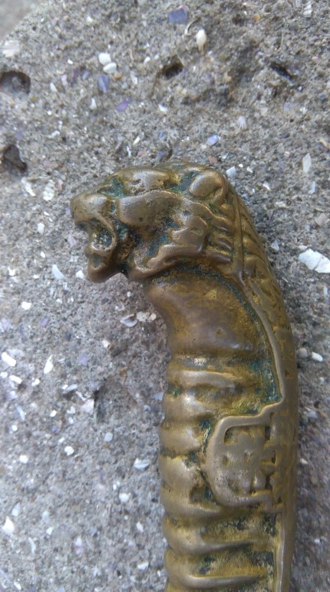 В Харькове на Померках работал мой двоюродный брат, было отлито лишь обрамление со львом рукояти, и вмочил данное обрамление в самодельную ручку штык-ножа К-98 и удачно мне пропил за 1,5 л самогона, данный рукоблуд я подарил товарищу на день рождения за 5 копеек лет 10 назад. Если у него девайс остался-скину фото.