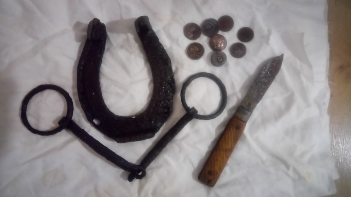 Делал упор на нож, дал общее фото, по остальным находкам мне понятно. Интересен ножичек, на современный не похож.