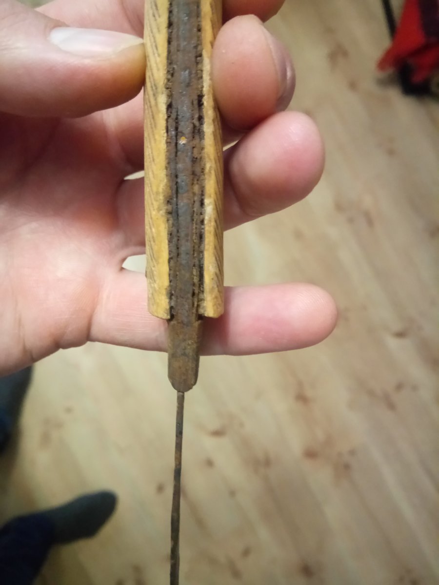 Прив Приветствую, казалось, что гансовский или итальянский, ни как не думал, что такой сохран металла может быть по царизму. Найден между v-образными ячейками, там же найдена итальянская монета. А где в вашем клеймо, район "гарды" или на основании клинка?