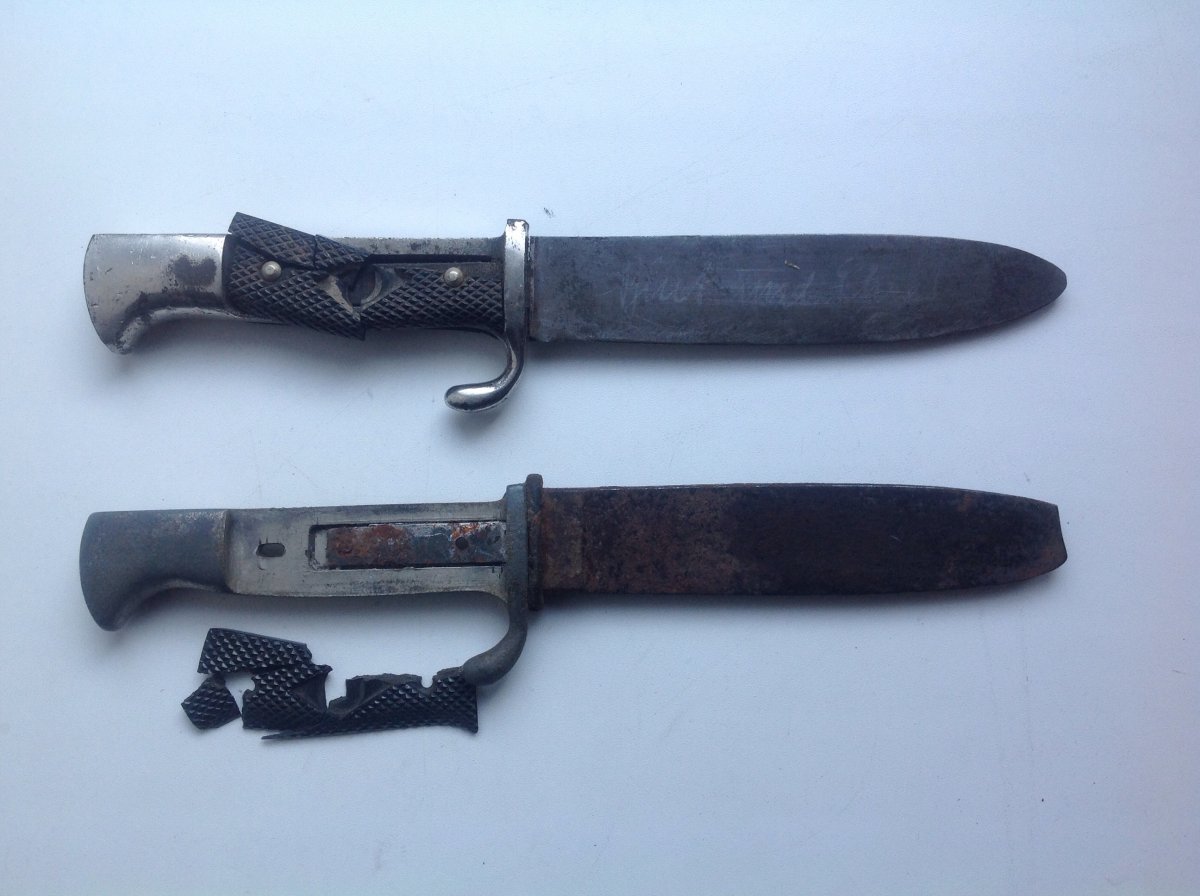 Цинковый да - труп, а вот второй... Идеально было бы попробовать предложить верхний нож собирателю ГЮ по производителям. Ибо перед нами раритет.
