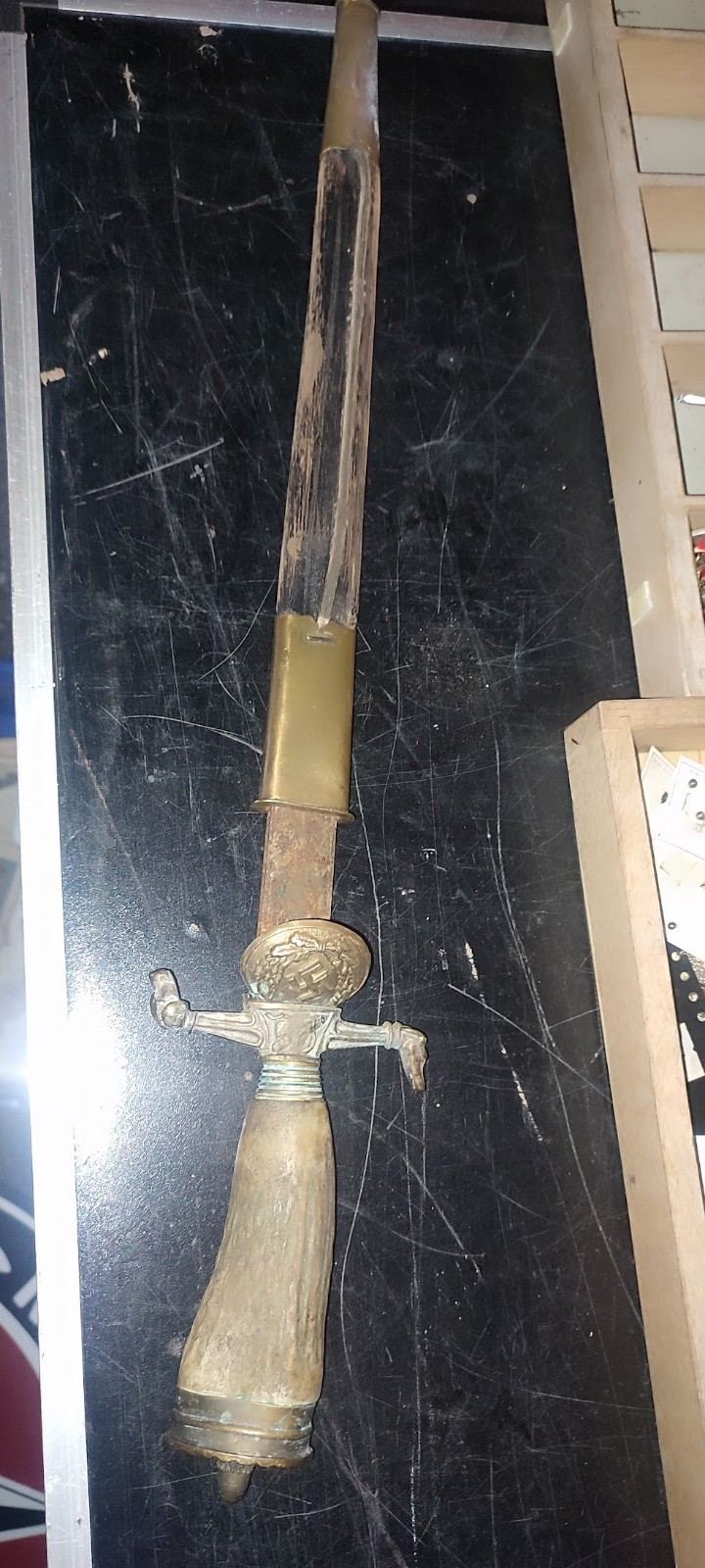 Якщо ножі не ваші, потрібно було написати, що знайомий каже про історію їх походження. Не дуже розбираюсь, почекаю знатоків, але виникають деякі сумніви в оригінальності.
