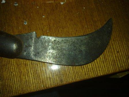 Обычный садовый нож!!! А клеймо - та хоть балалайка. У моего деда такой был, он им молодые побеги обрезал. А то что их могли использовать санитары, так это запросто - уж оч удобное лезвие для всяких вспарываний. С ув. Сергей.