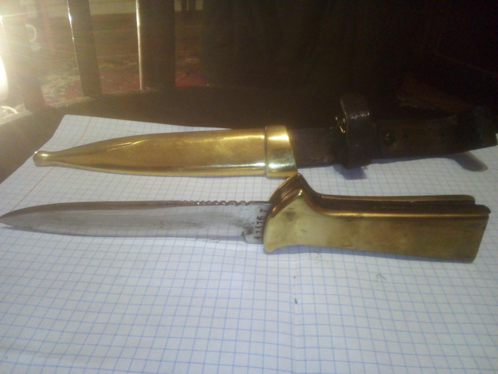 Шановні камради, історія така, людина родила уже, крім ще іншого різного старенького барахла, має такий ножик, по словах його батька, батько воював 41-45 рік, пару медальок має, крім них говоре що і ножик привіз з війни, 1976 році він ще був зареєстрований як охотнічий, говоре була на сталь, цвяхи рубає. Підкажіть будь ласка ціну, і взагалі по девайсу, дякую.