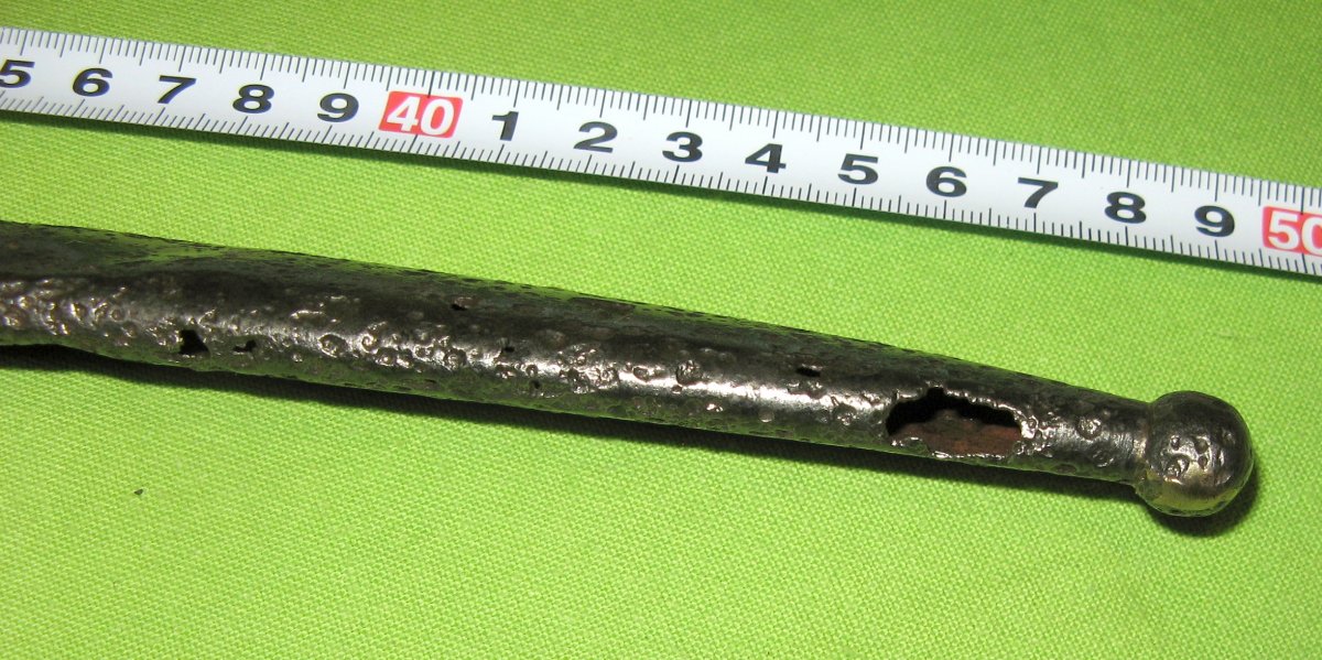 Допоможіть оцінити ножни багнета Верндль. Ймовірно буду продавати. Копані, почищені, мають вм'ятини та дірки (показав на світлинах). Видалив заклепки, витягнув пружину, щоб почистити та вирівняти з середини (почистив, ще не рівняв).