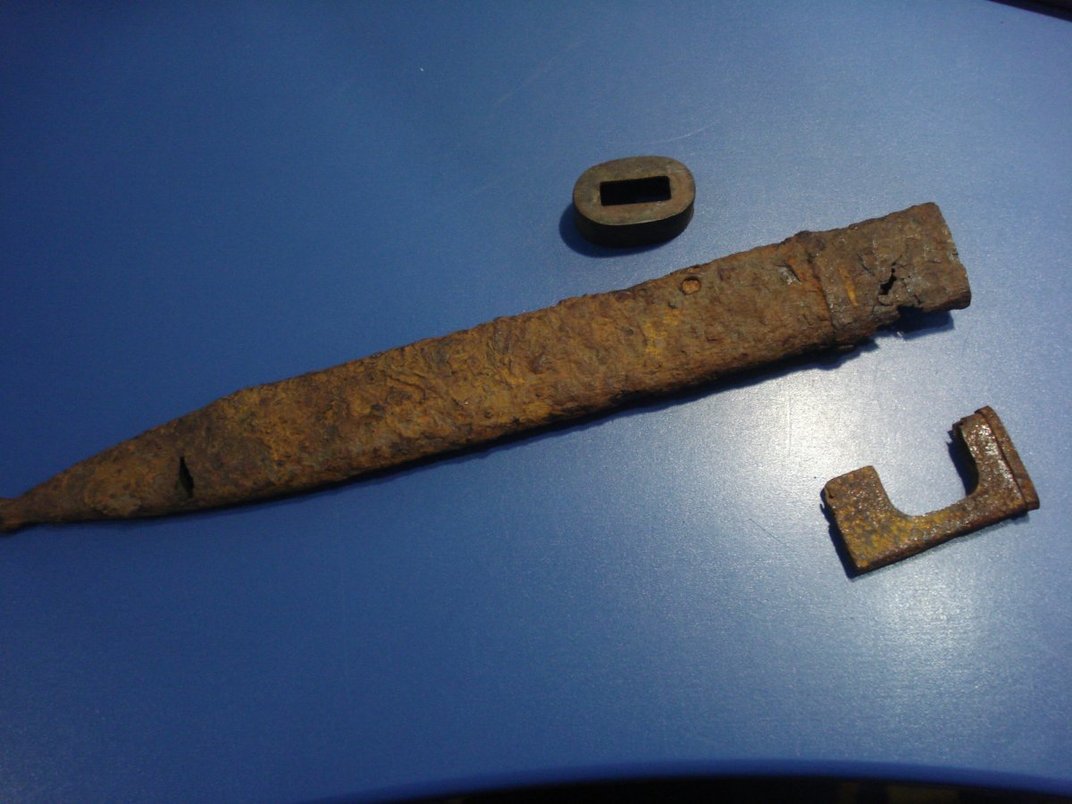 продаются ножны от штыка--коп.с повреждениями но метал прочный.пружина держит хорошо.не разбирался.а таже --пружина от ножен свт.состояние отл. и гарда от кортика\ножа-не определено( отв 1.8*0.5 см).цена продажи --160 грн