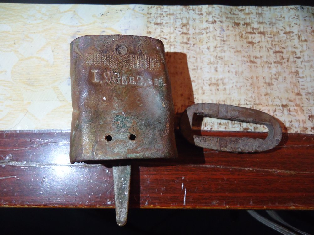 Возникла такая же проблема, есть металл, нет кожаной части. Тоже думаю ножны сделать, когда кожу найду подходящую. Насколько знаю, кожа шла толстая 2-2,5 мм толщиной, причем обрабатывалась так, чтобы в процессе эксплуатации сильно ножны не сгибались. Ножны делались по размеру клинка, с запасом для прошивки. Размеров как таковых нет, все на глаз. Соединялась кожа с латунными частями с помощью латунных проволочек, толщиной 1 мм, которые вставлялись буквой П в отверстия, а изнутри ножки разводились в стороны. Если понадобятся размеры нижней латунной части ножен - обращайтесь.