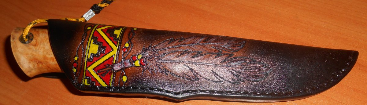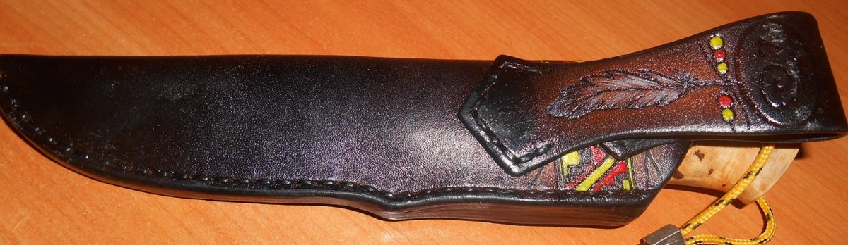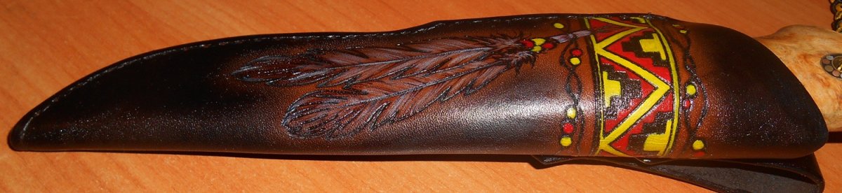 Приветствую,камрады,недавно создавал тему "Кто сделает ножны на заказ" .Нож из подшипника,заказывал на соседнем форуме,бюджетный,ножны соответственно тоже заказывал простенькие. DSCN1347.JPG DSCN1348.JPG DSCN1349.JPG DSCN1350.JPG DSCN1352.JPG Вот такие мне сделала местная рукодельница,просил с индейским рисунком)))интересует ваше мнение,не судите строго...или судите))